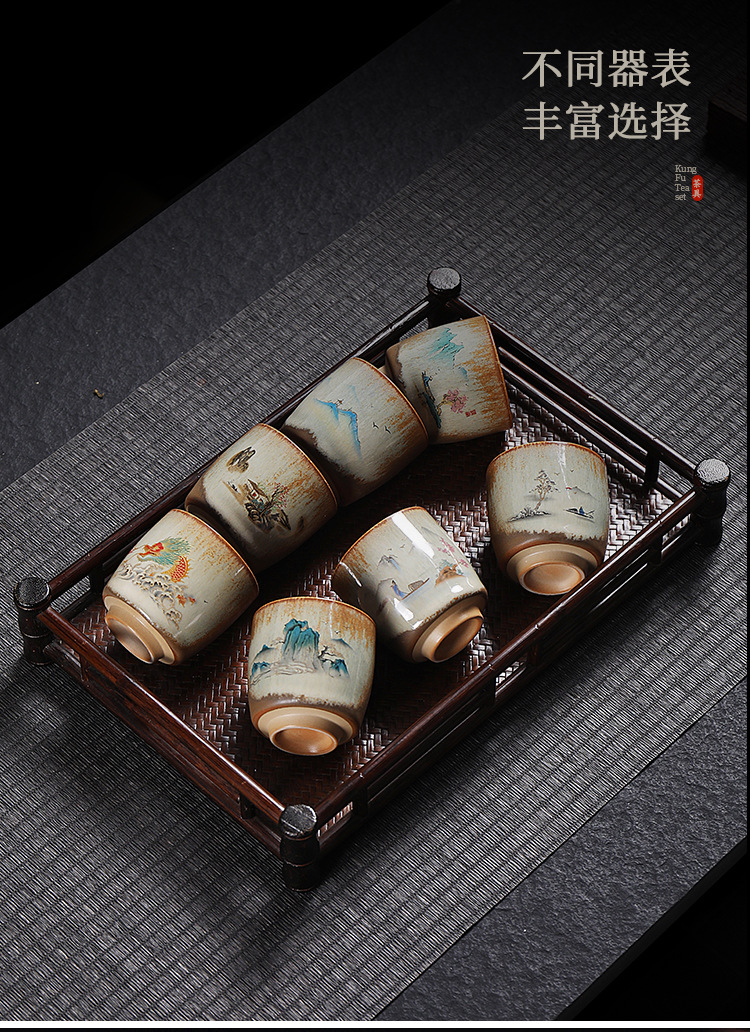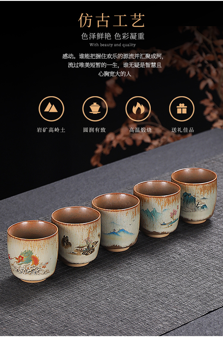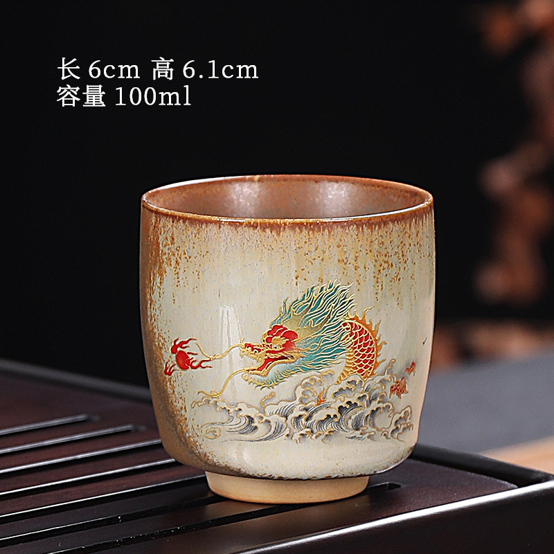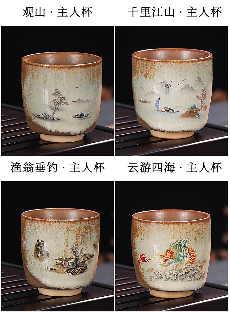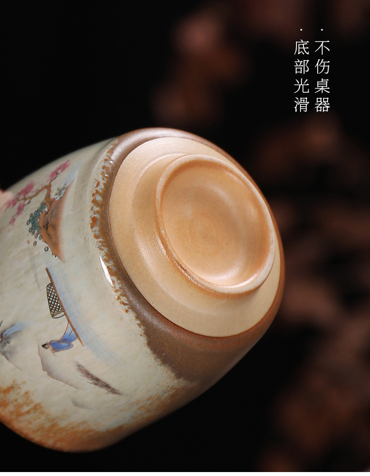 复古仿柴烧主人杯中式功夫茶杯家用轻奢会客泡茶杯高端主人杯喝茶