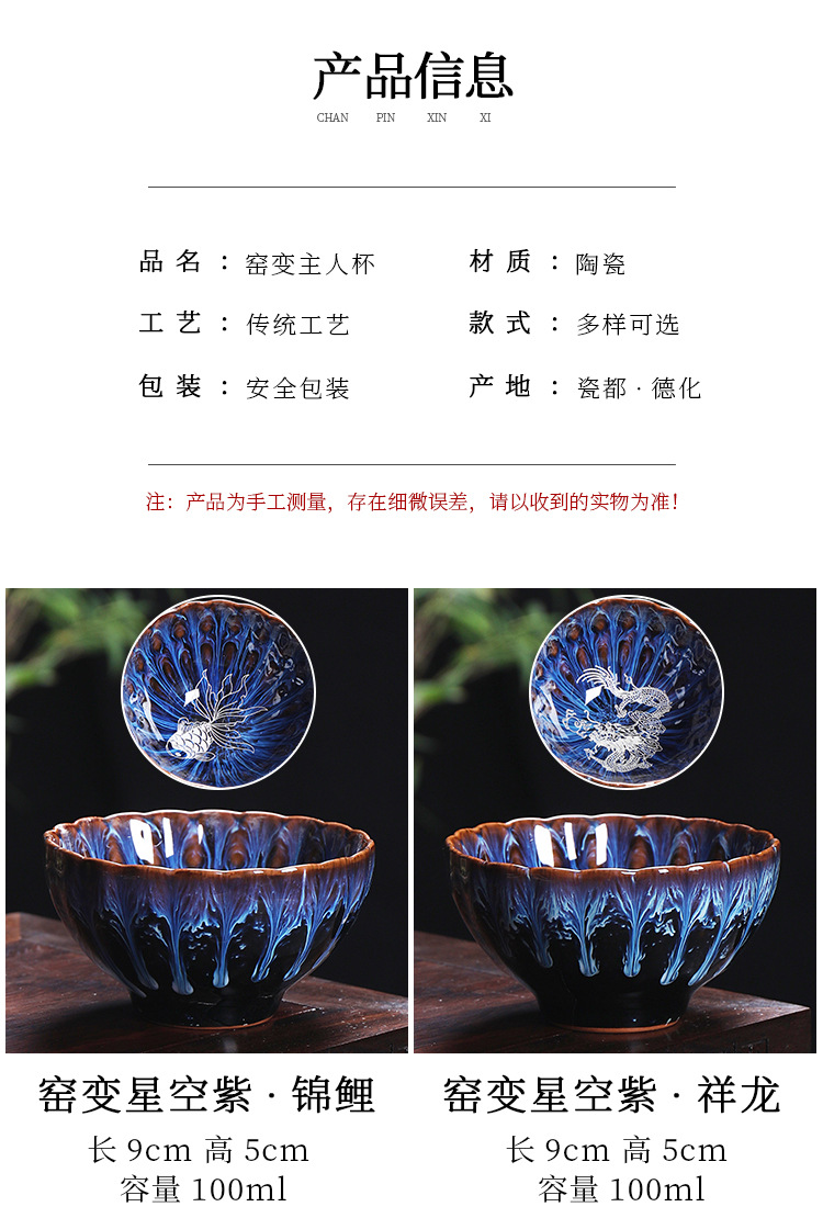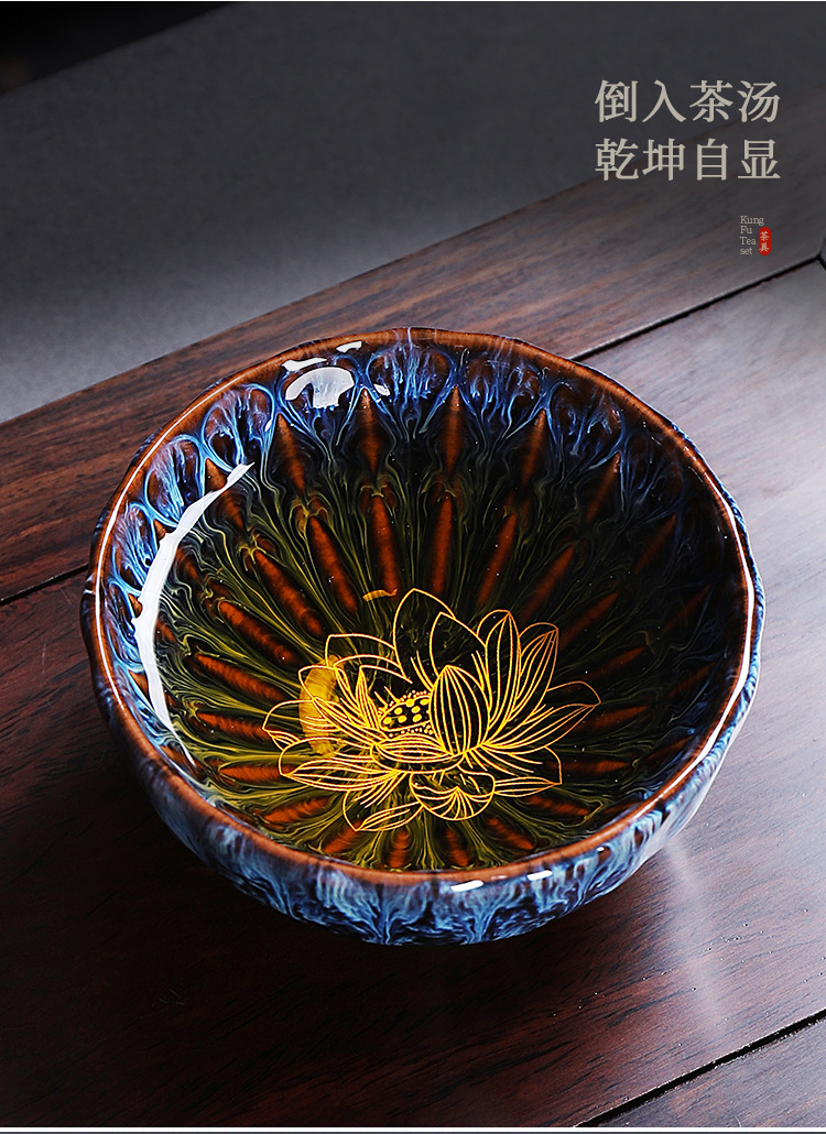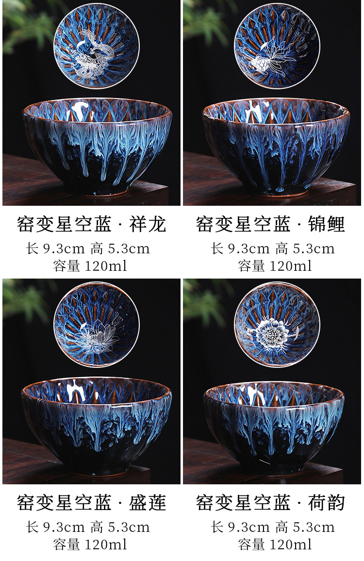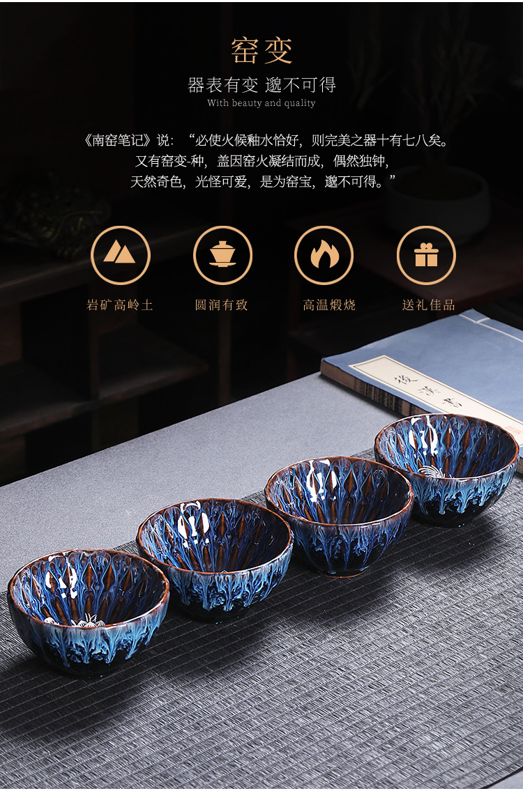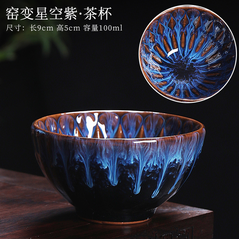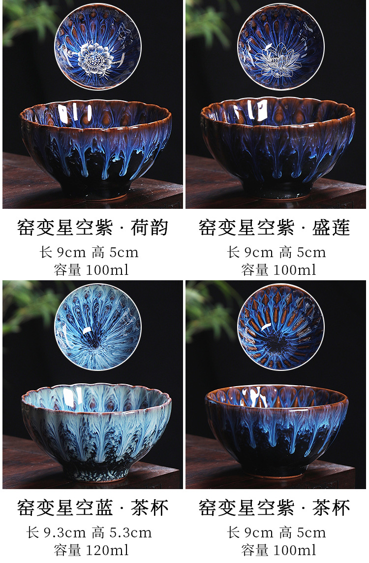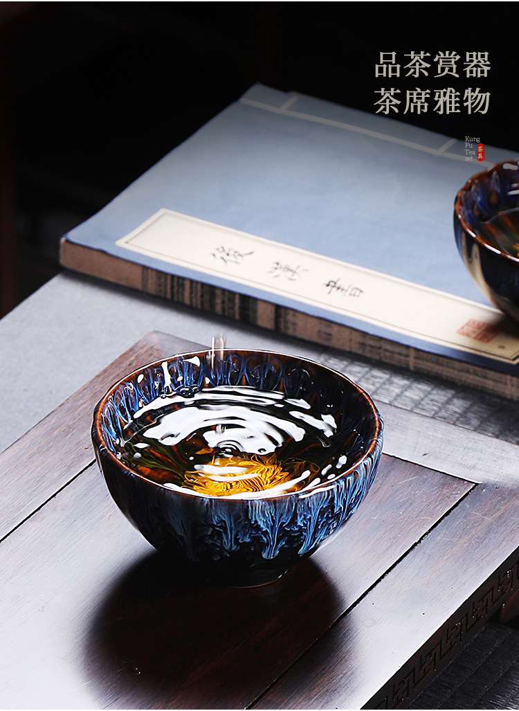 窑变茶杯主人杯陶瓷花瓣品茗杯茶具茶盏单个茶碗家用功夫茶杯建盏