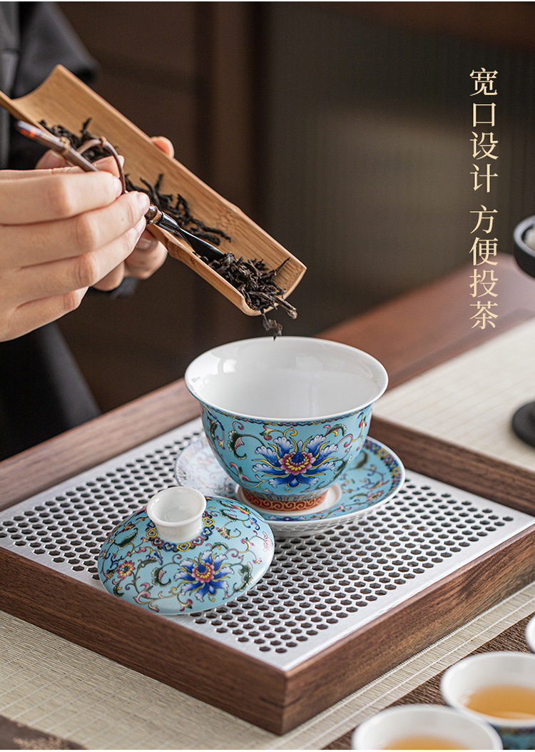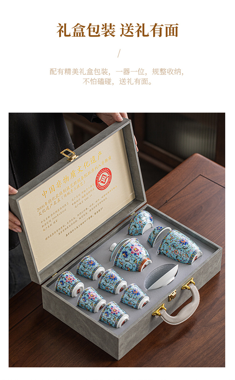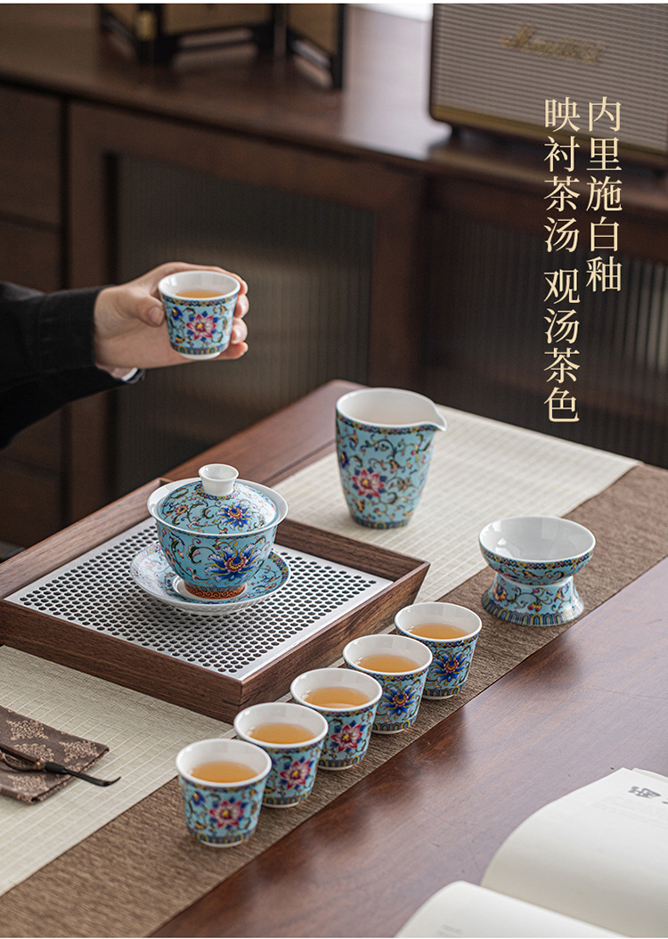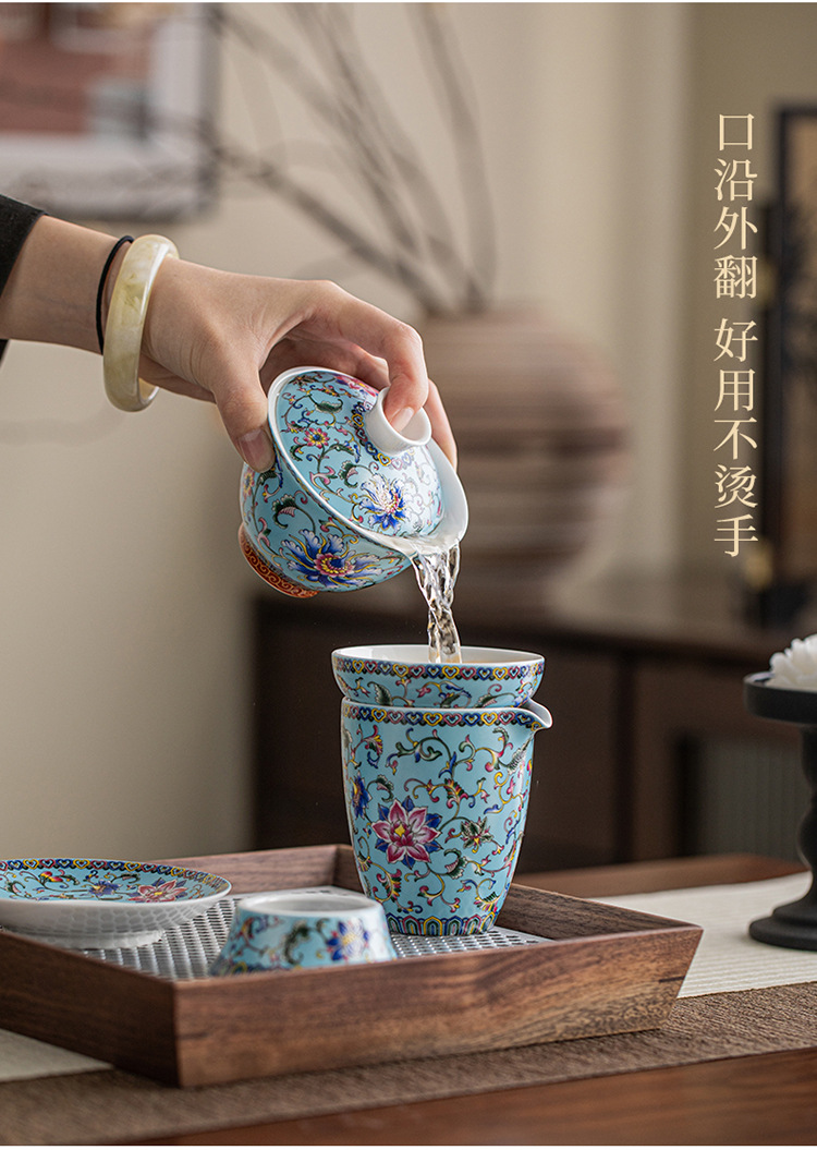 珐琅彩功夫茶具套装泡茶碗宫廷风盖碗茶杯轻奢高档家用商务礼品装