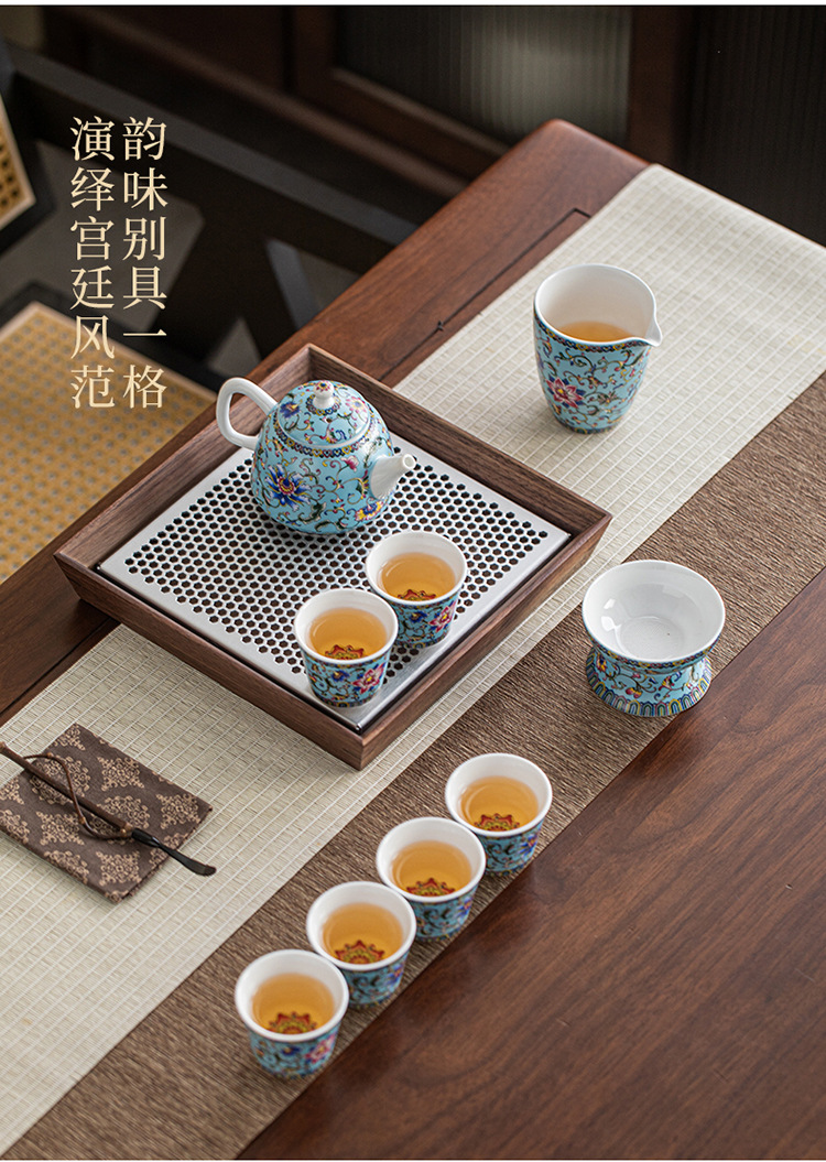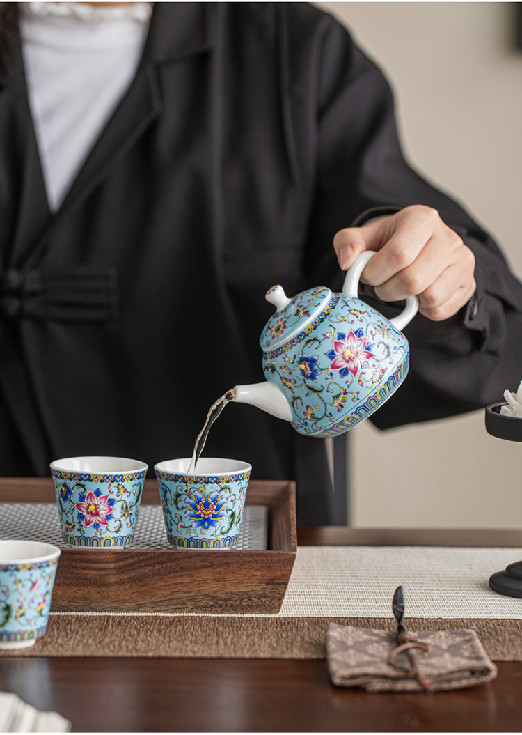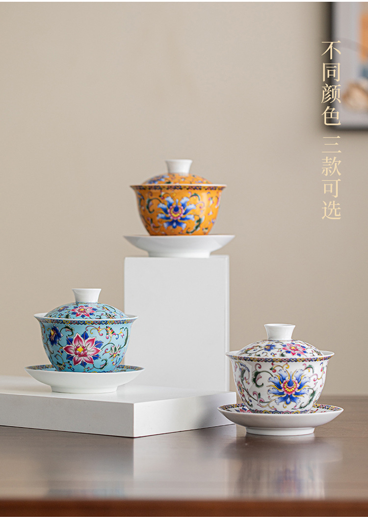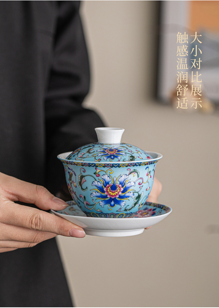 珐琅彩功夫茶具套装泡茶碗宫廷风盖碗茶杯轻奢高档家用商务礼品装