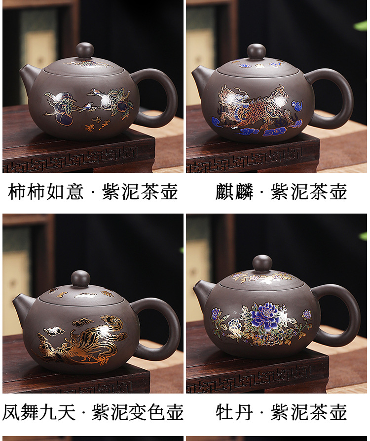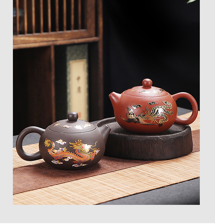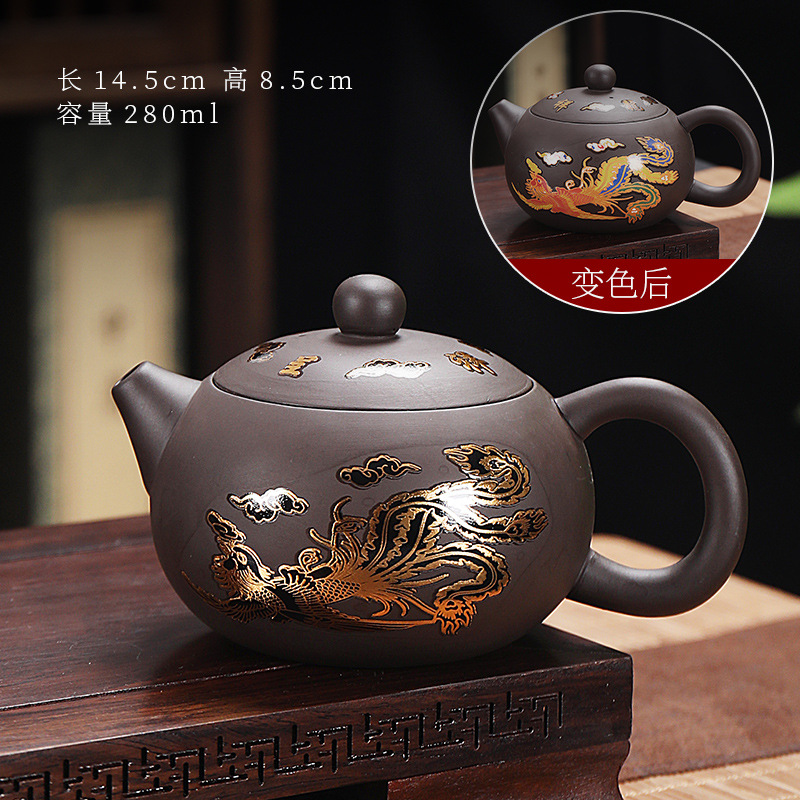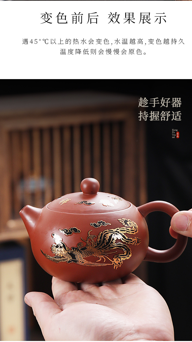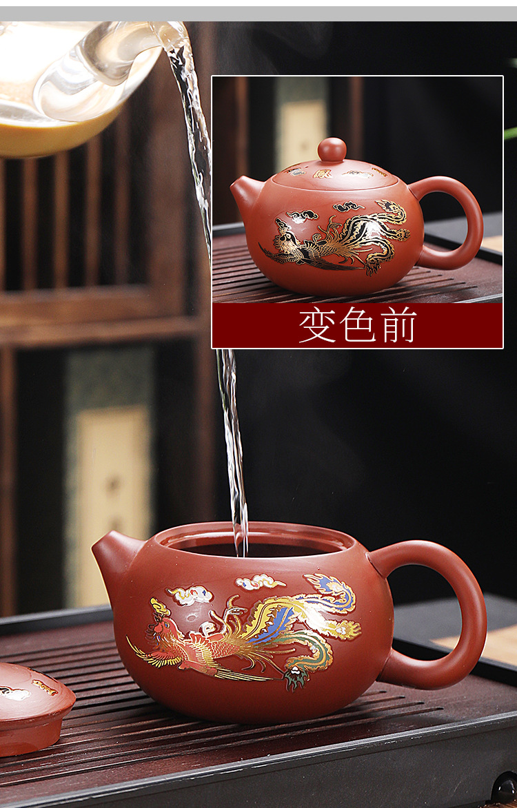 紫砂变色茶壶单壶朱泥凤鸣壶西施壶功夫茶具家用龙凤呈祥泡茶壶