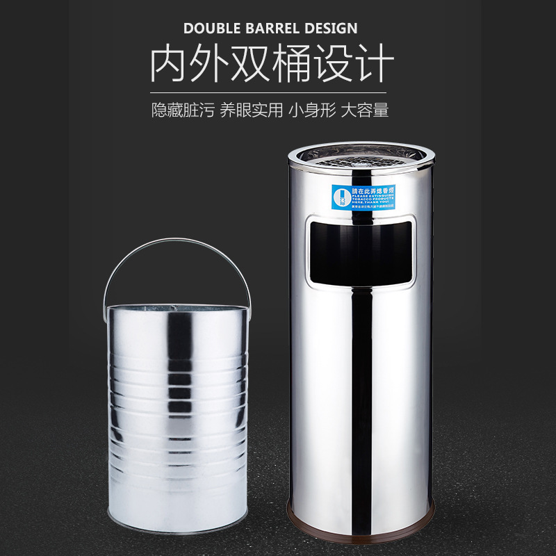 户外商用酒店大堂KTV不锈钢大容量垃圾桶带烟灰缸加厚丽格果皮桶