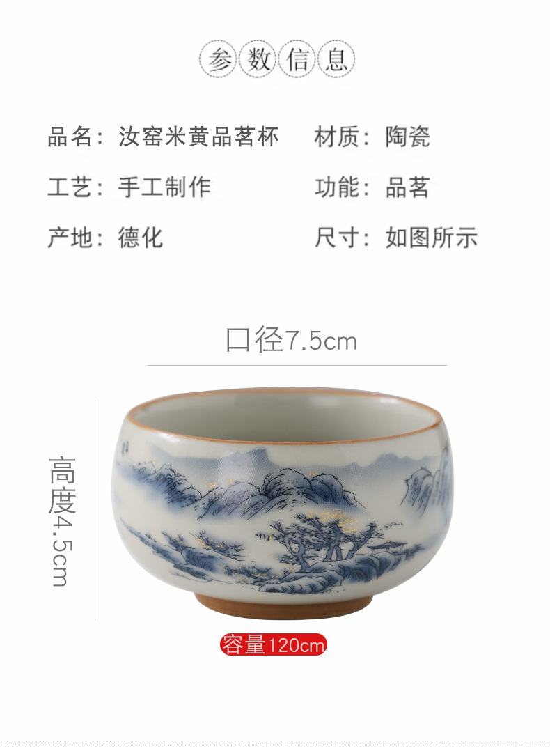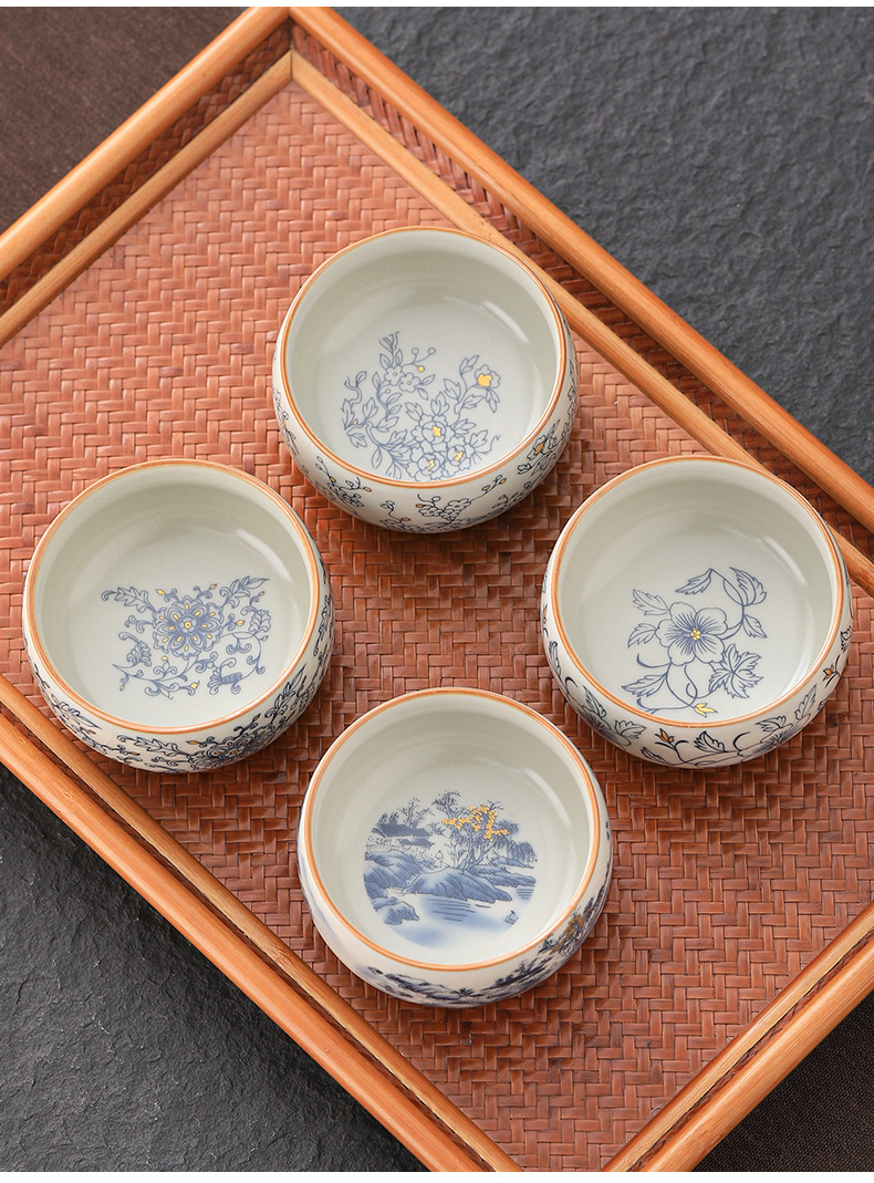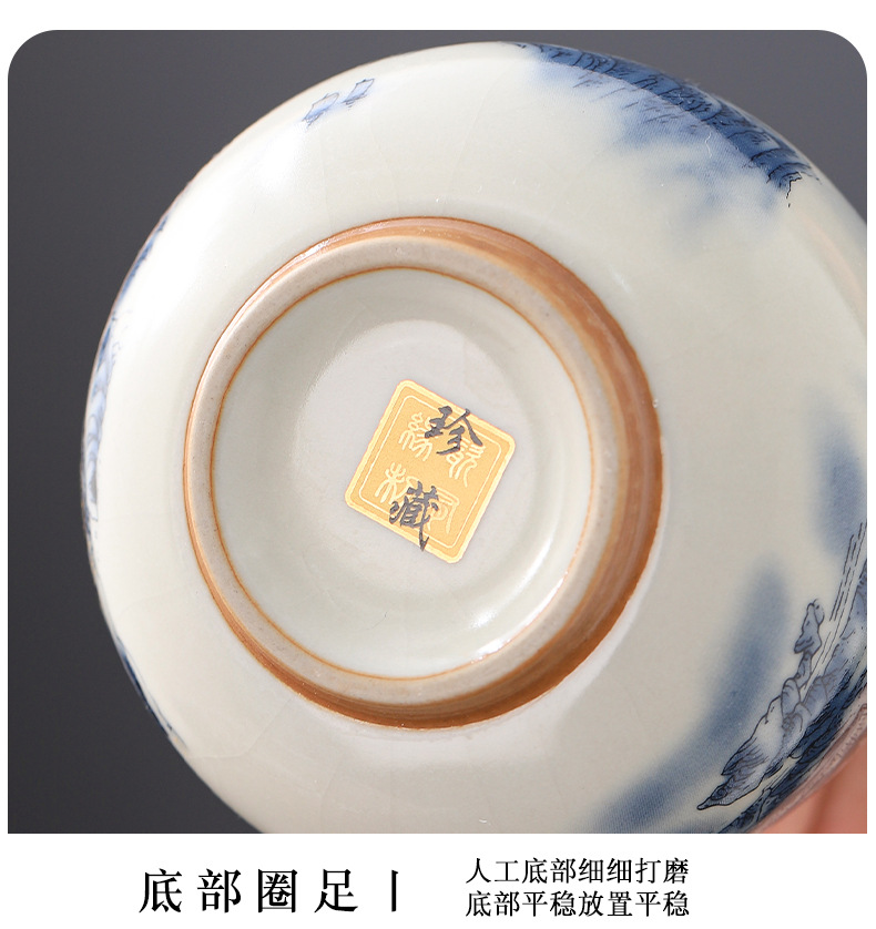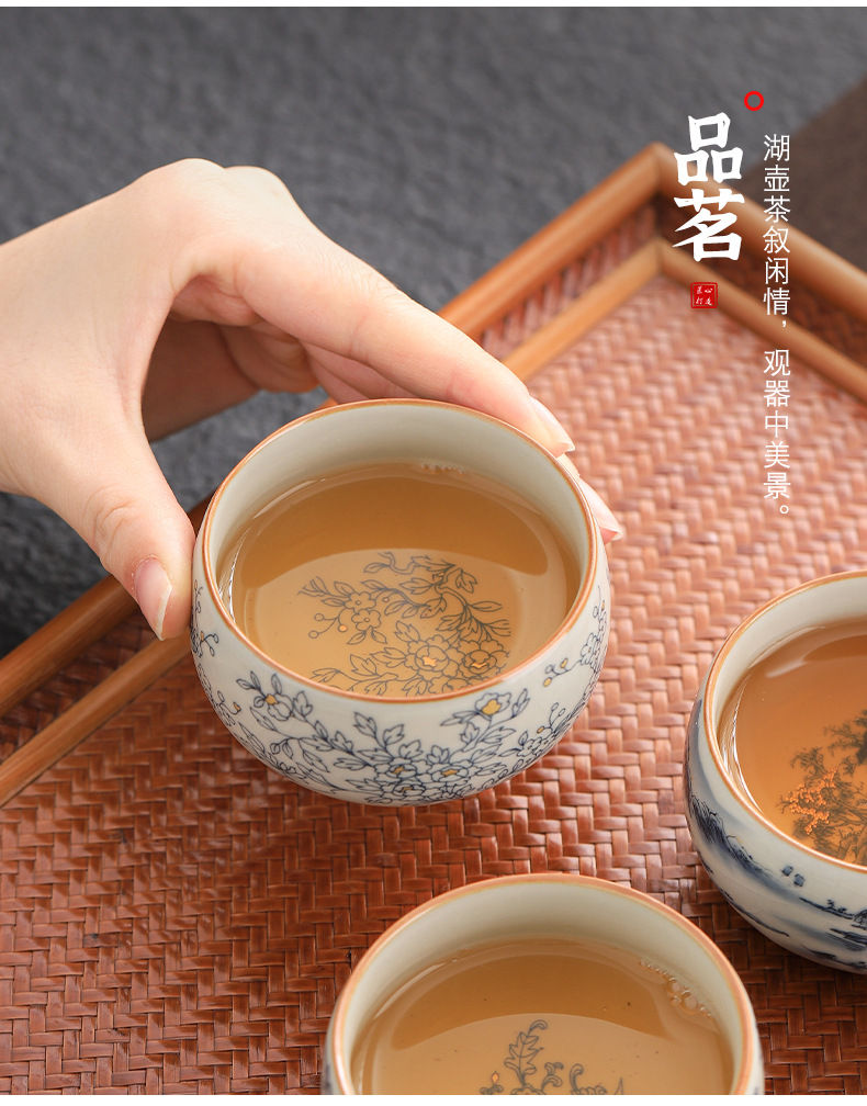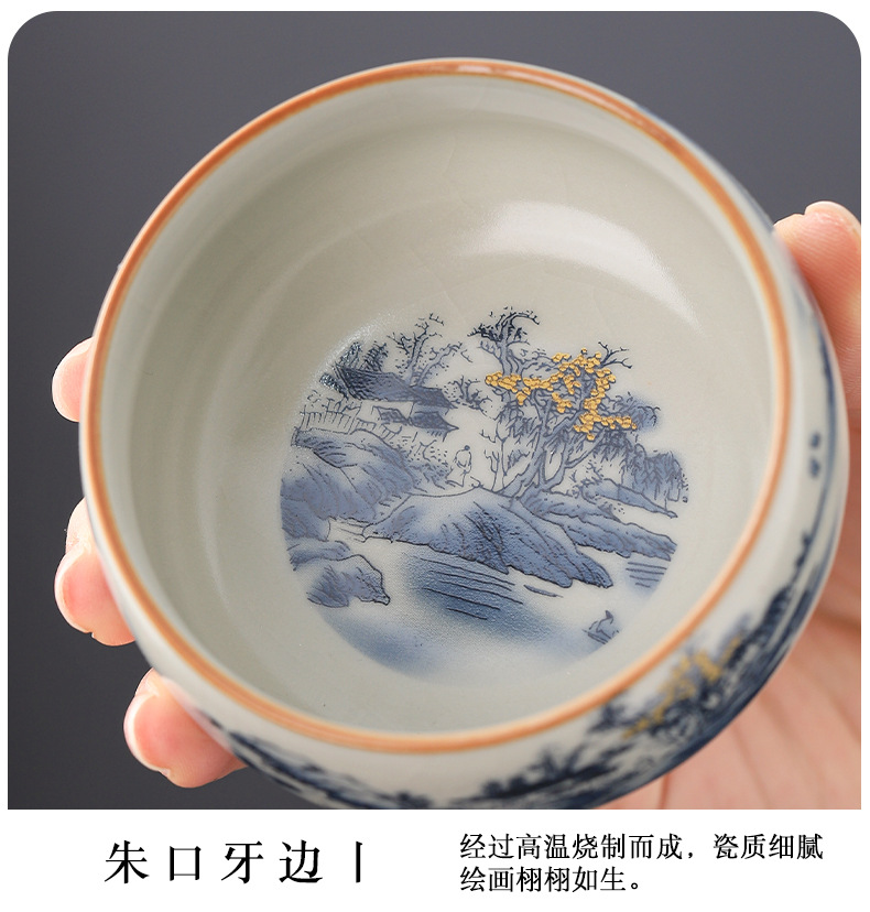 汝窑罗汉杯功夫茶具陶瓷主人杯开片可养茶杯青花缠枝莲品茗杯