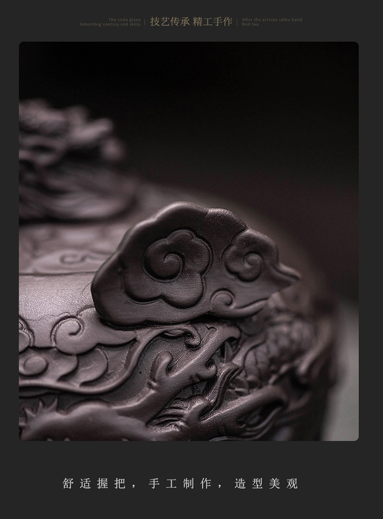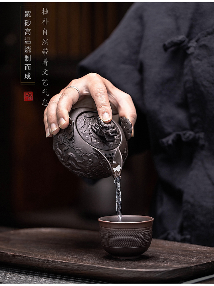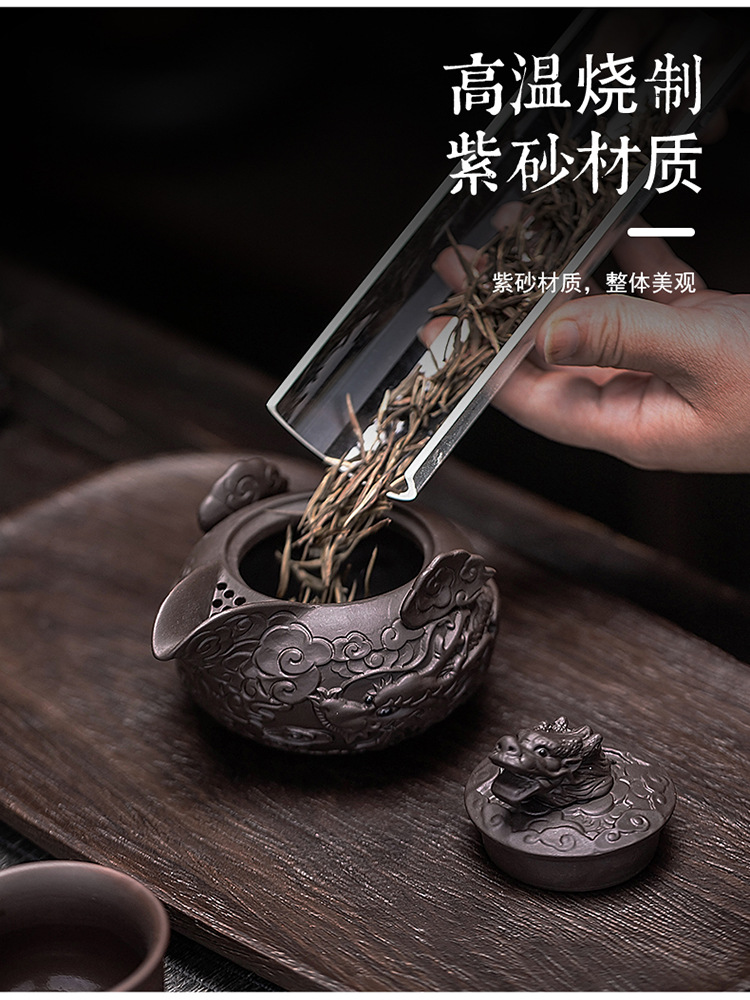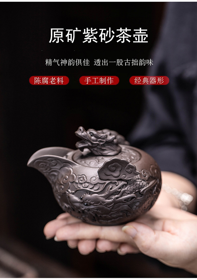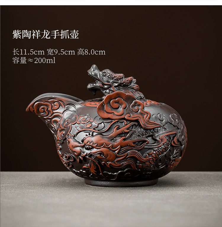 原矿紫砂祥龙手抓壶家用轻奢陶瓷功夫茶具办公泡茶壶大容量单壶