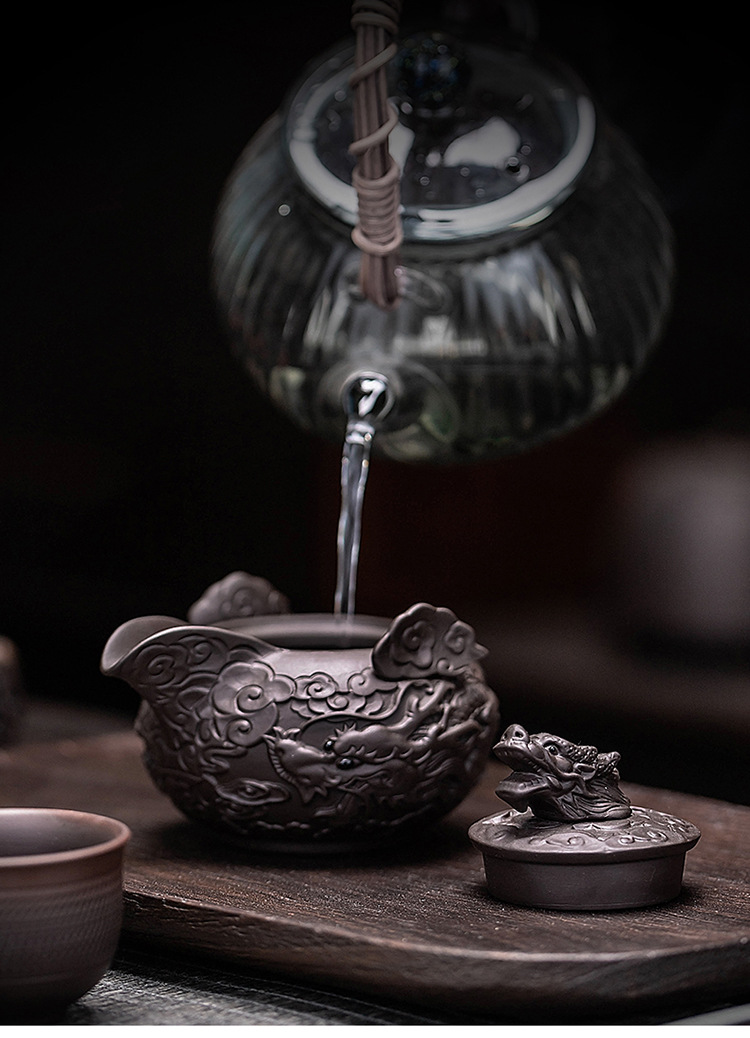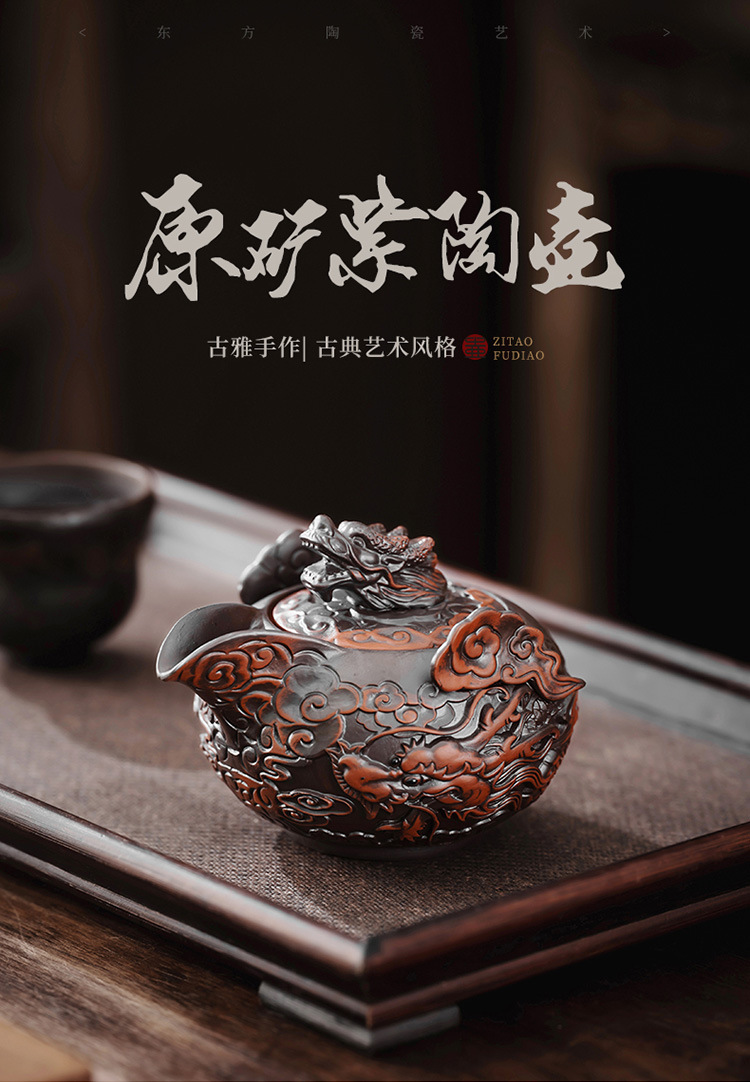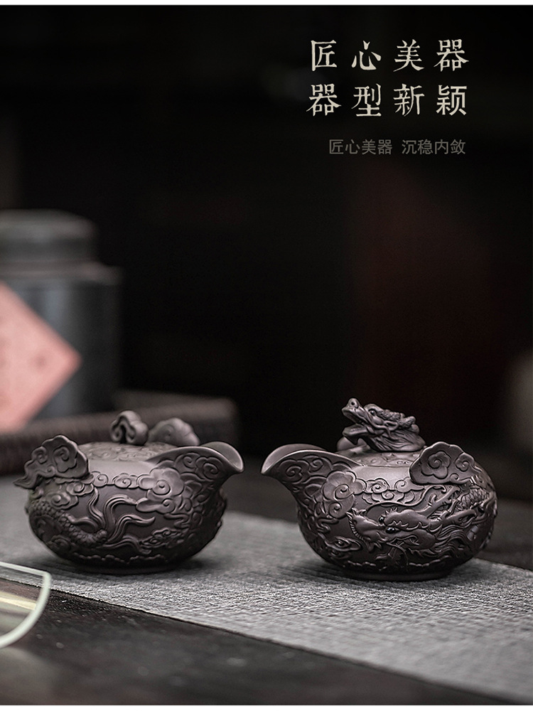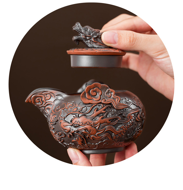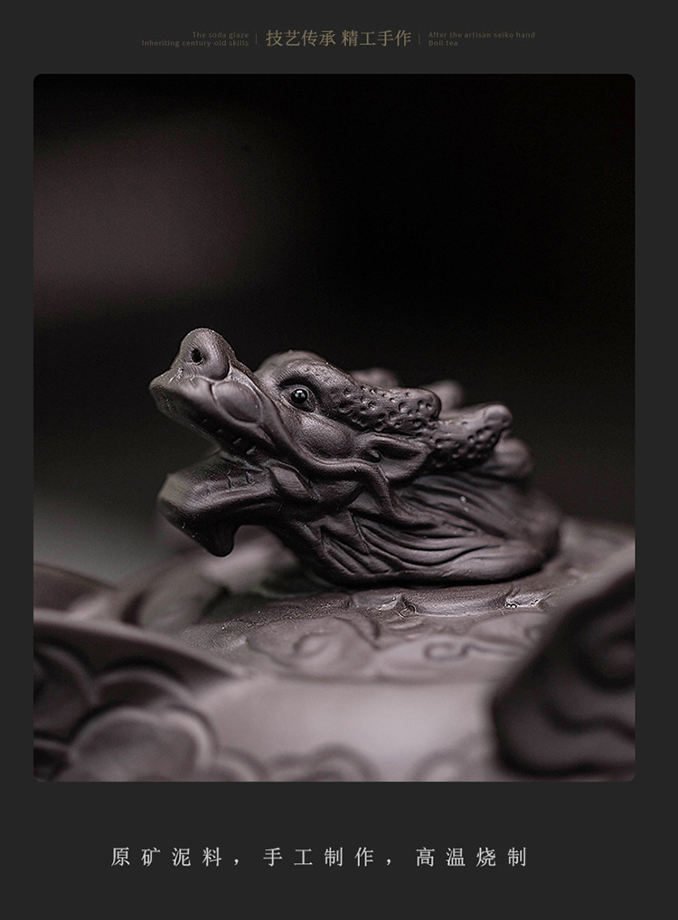 原矿紫砂祥龙手抓壶家用轻奢陶瓷功夫茶具办公泡茶壶大容量单壶