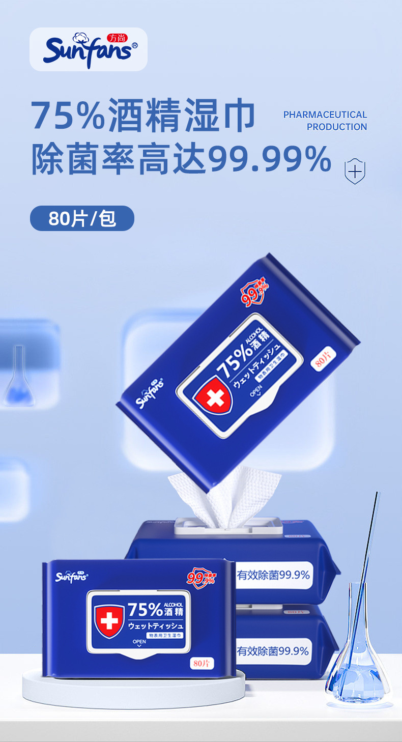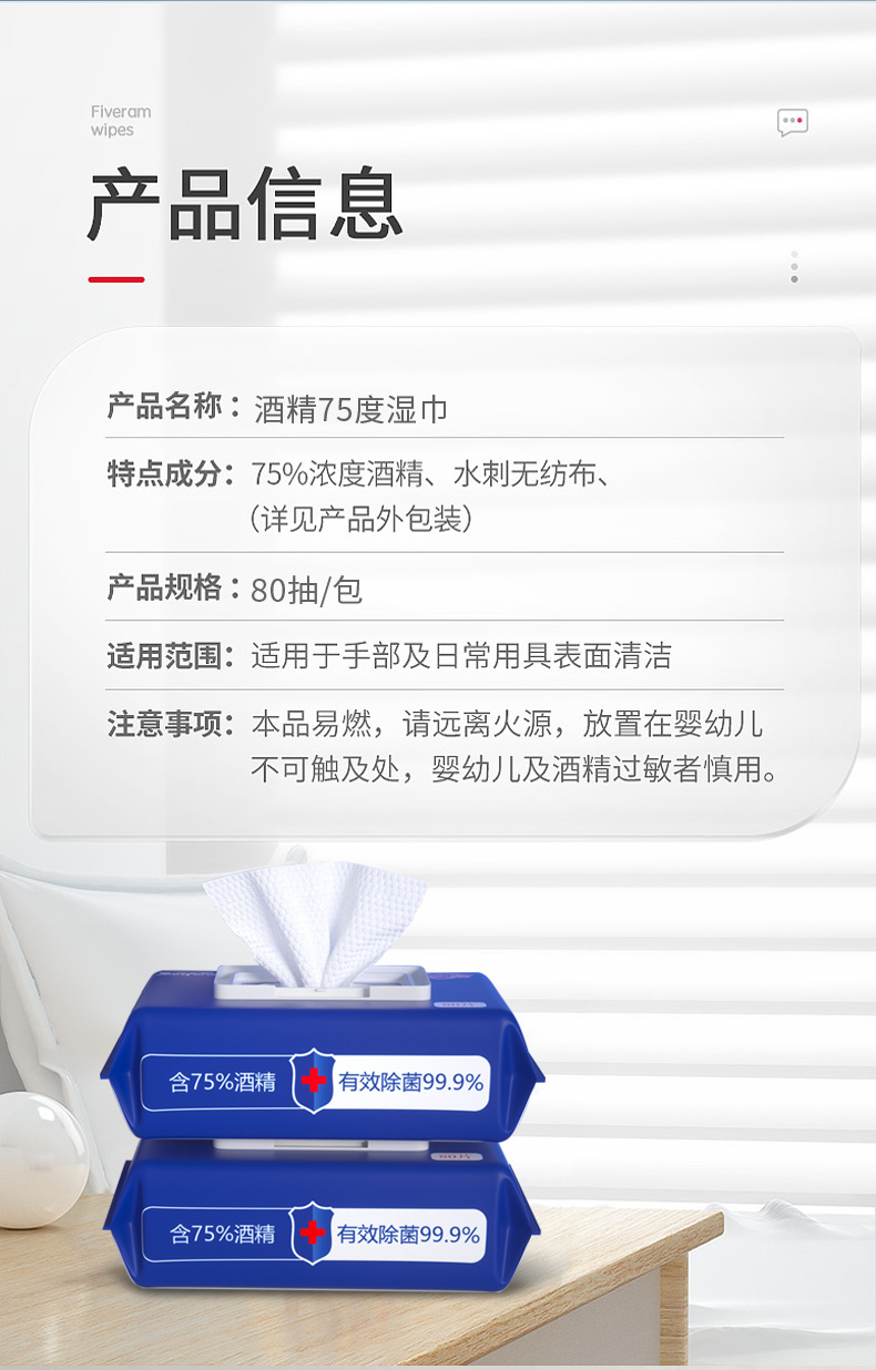 酒精湿巾75度大包工厂批发消毒杀菌湿纸巾80抽皮肤清洁湿巾纸