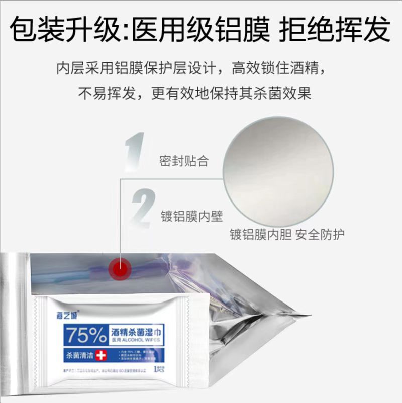 一件代发75度医用酒精消毒湿巾独立包装一次性酒精湿巾正品可点燃
