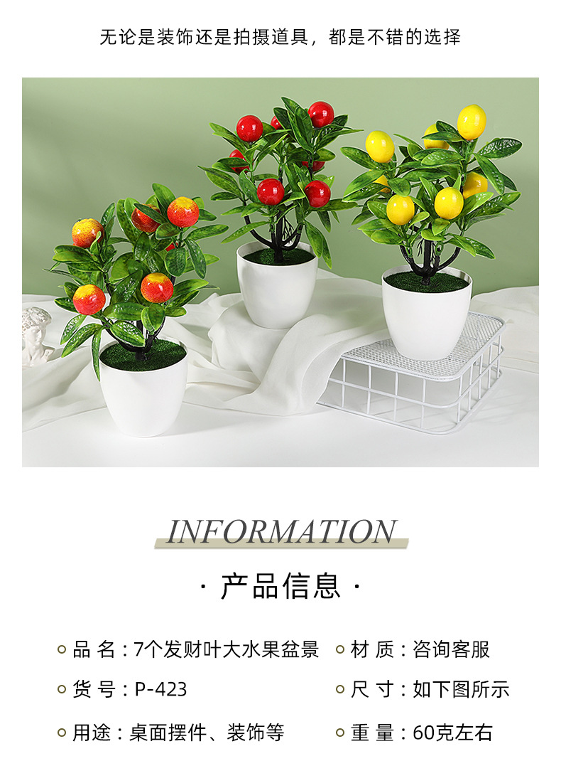 仿真7个发财叶大水果盆景客厅茶几摆设摄影道具酒柜摆件装饰现货