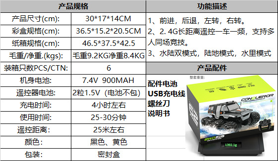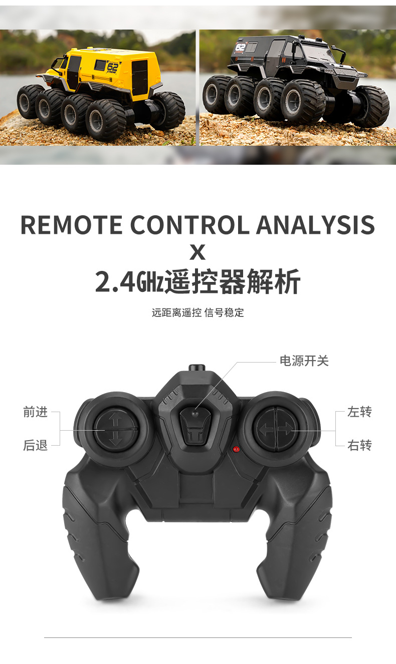 jjrc amphibious remote control mountain climbing off-road vehicle rc high-speed bigfoot toy eight drive eight wheels remote-control automobile
