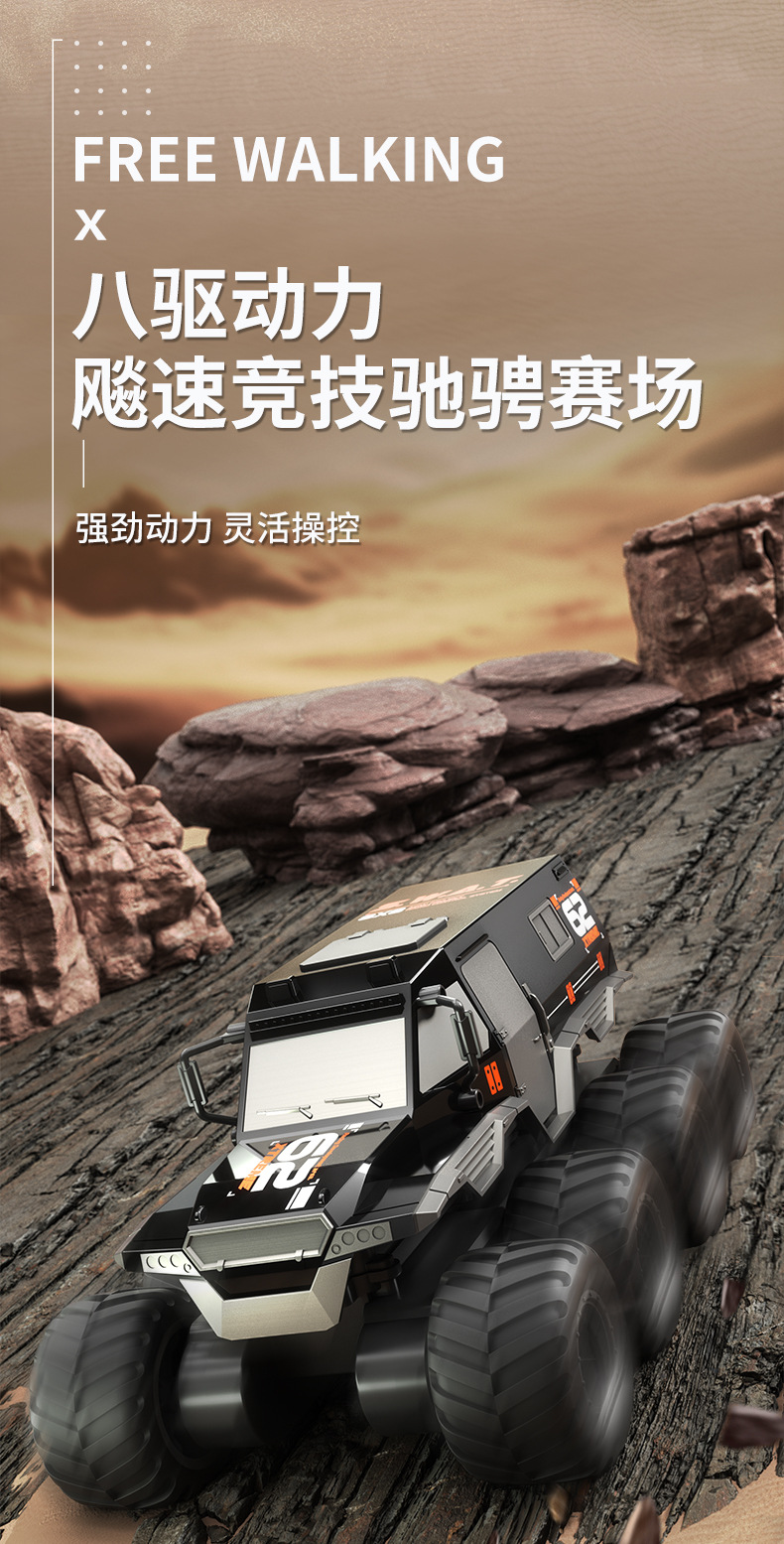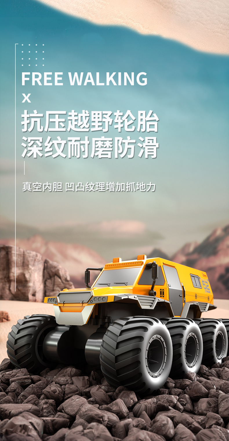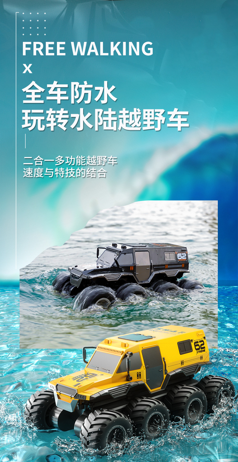 JJRC水陆两栖遥控山地攀爬越野车RC高速大脚玩具八驱八轮遥控汽车