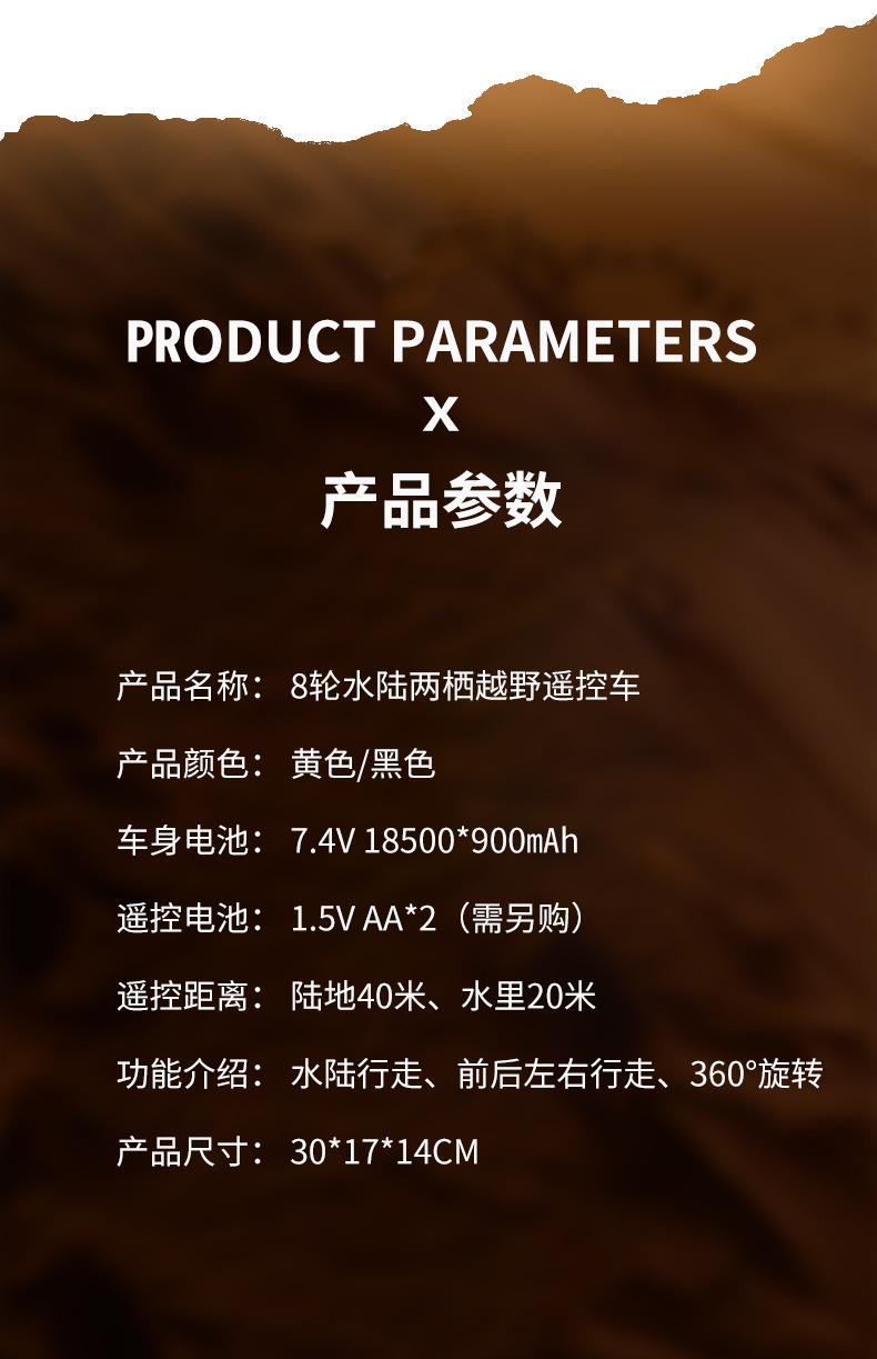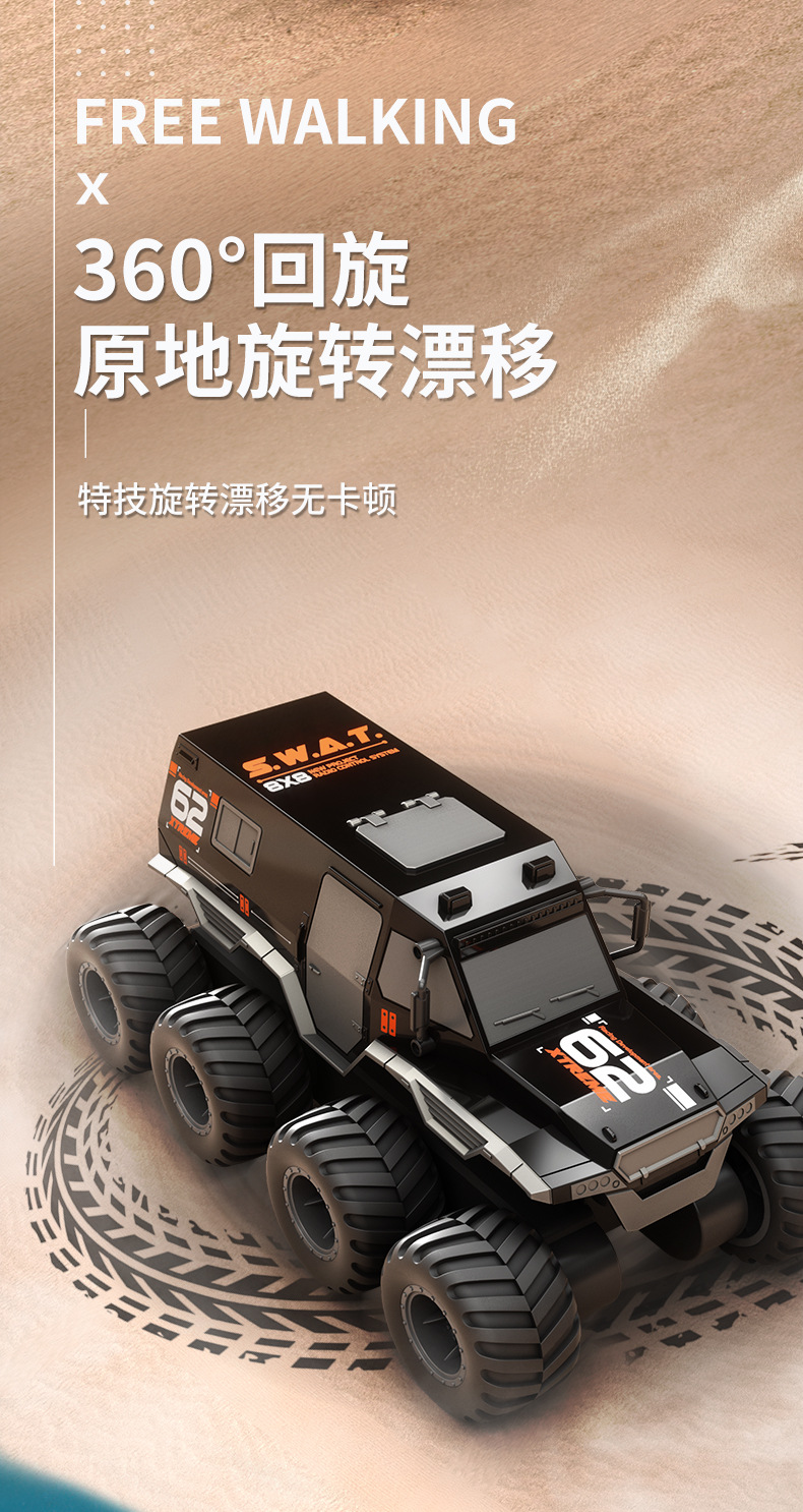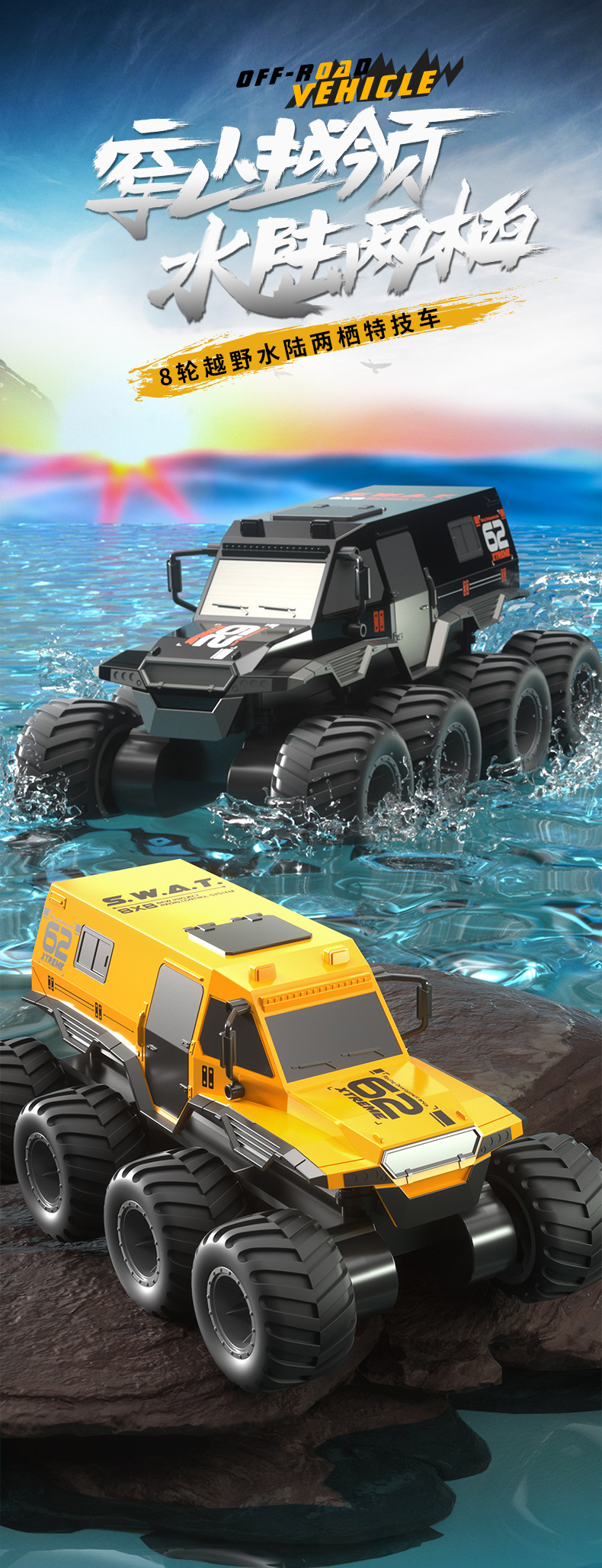 JJRC水陆两栖遥控山地攀爬越野车RC高速大脚玩具八驱八轮遥控汽车