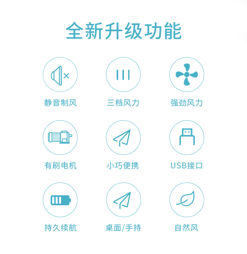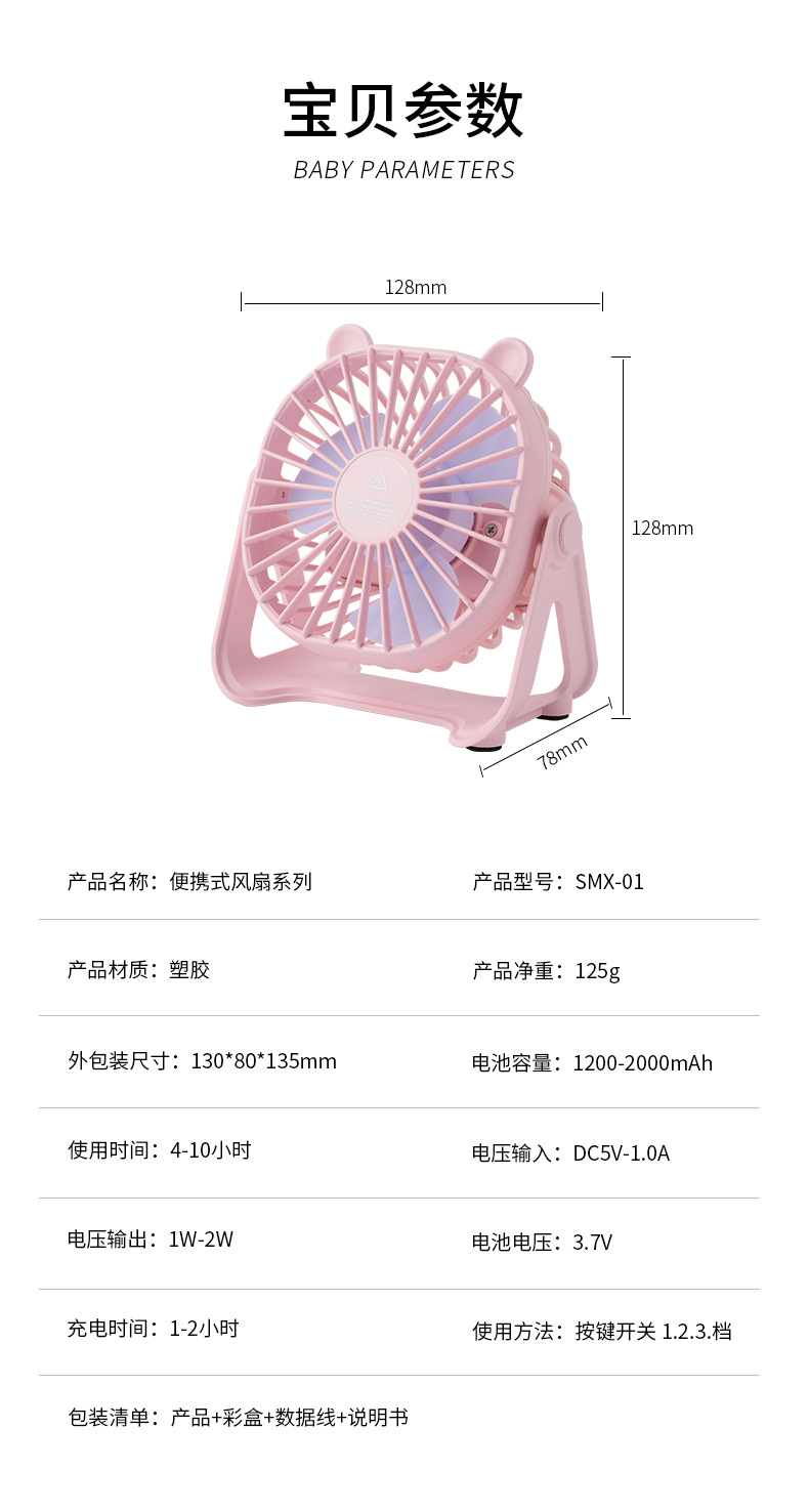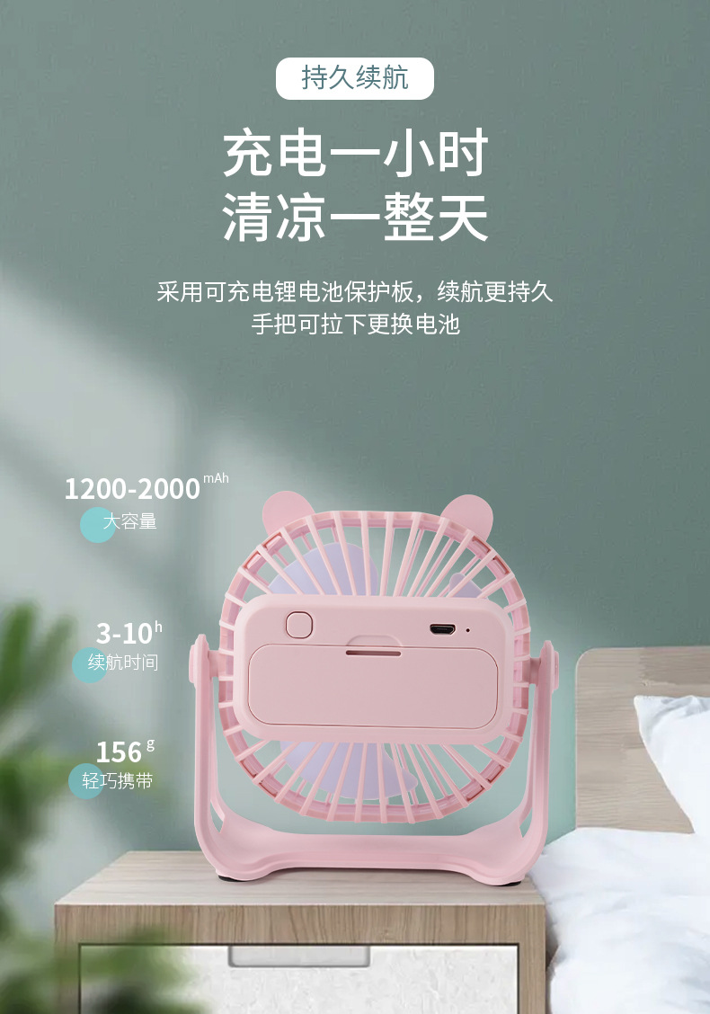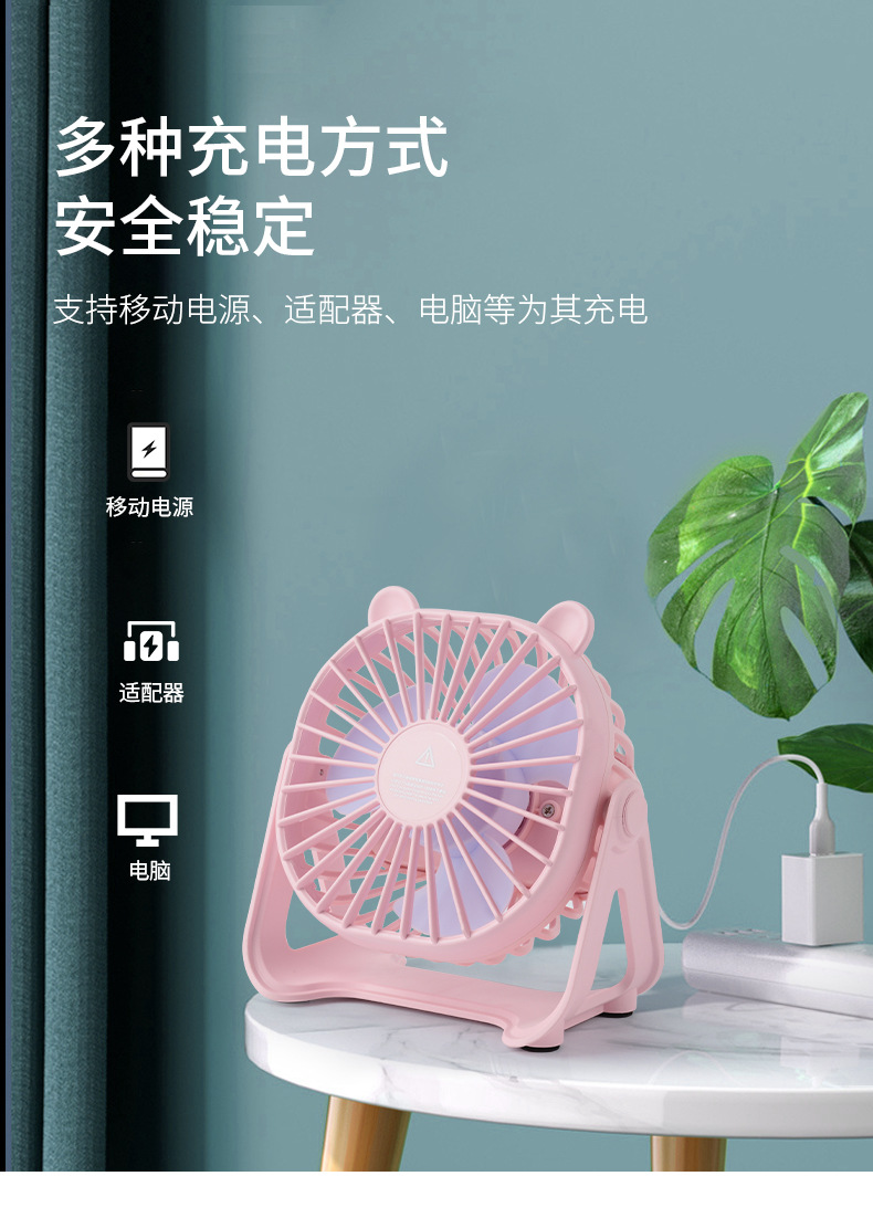 usb桌面风扇学生宿舍办公静音可充电360度旋转调节迷你台式小风扇