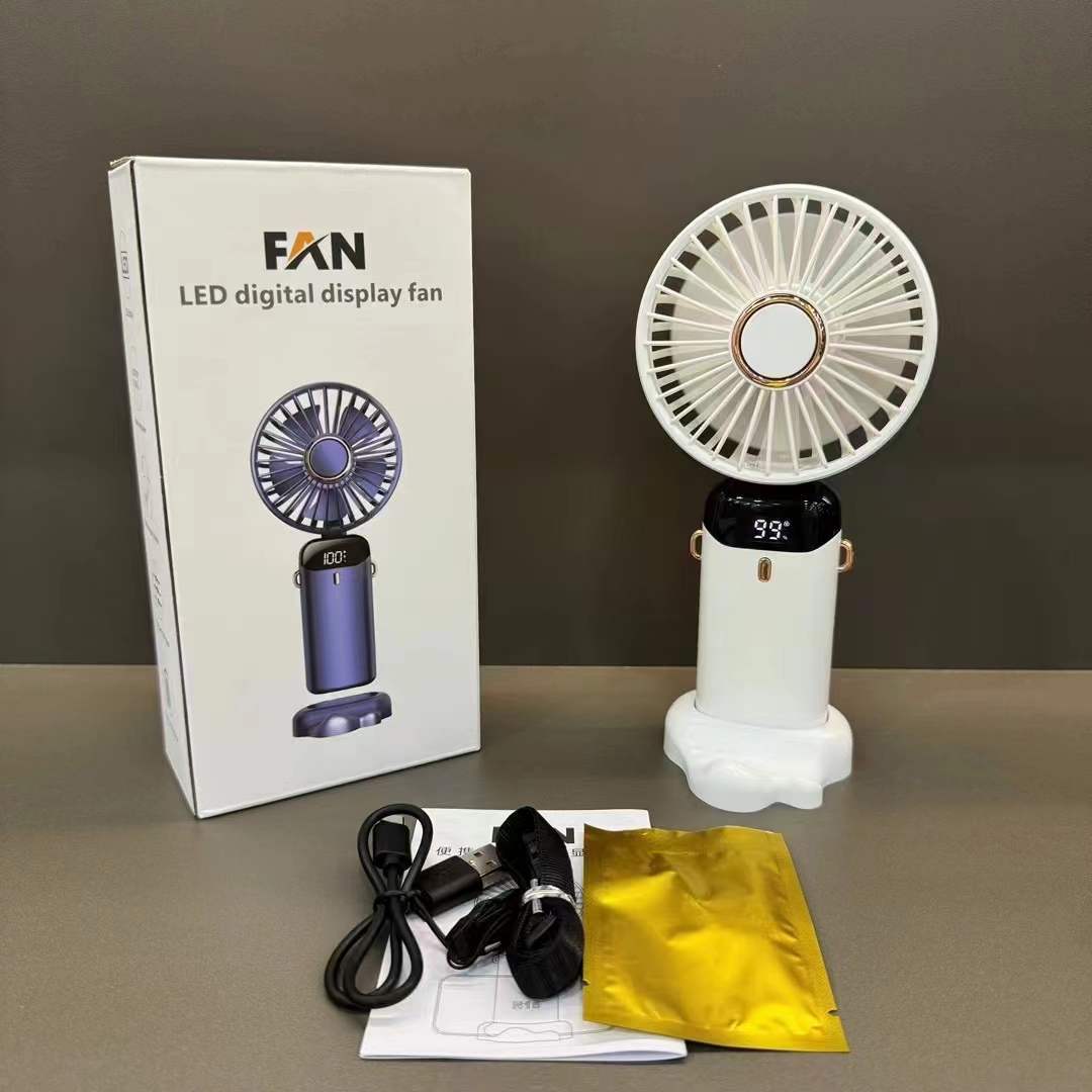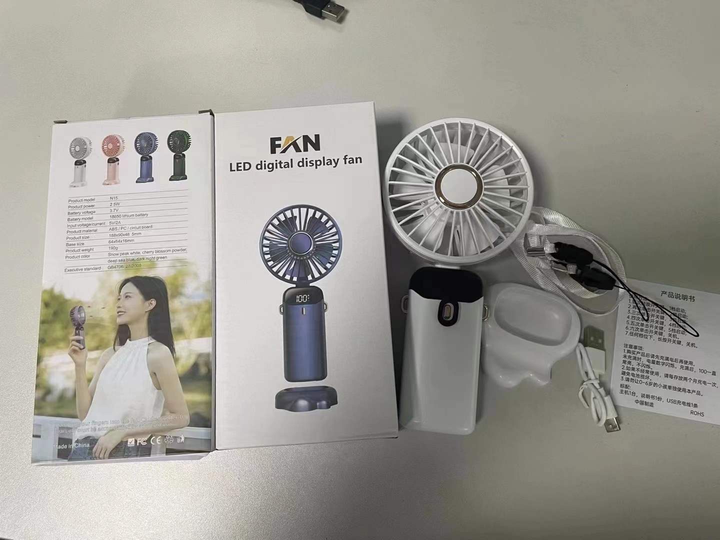 跨境N15手持风扇 迷你便携式学生小风扇数显折叠香薰充电小电风扇