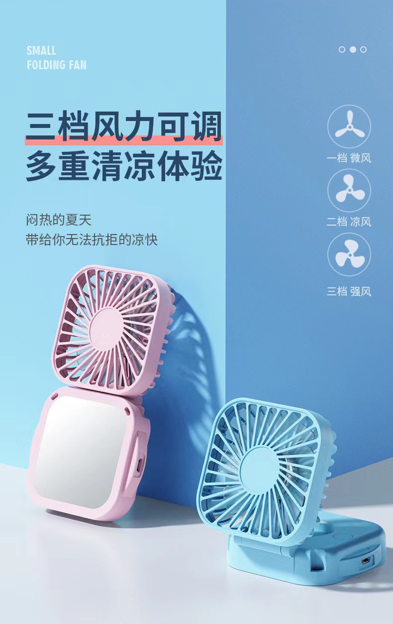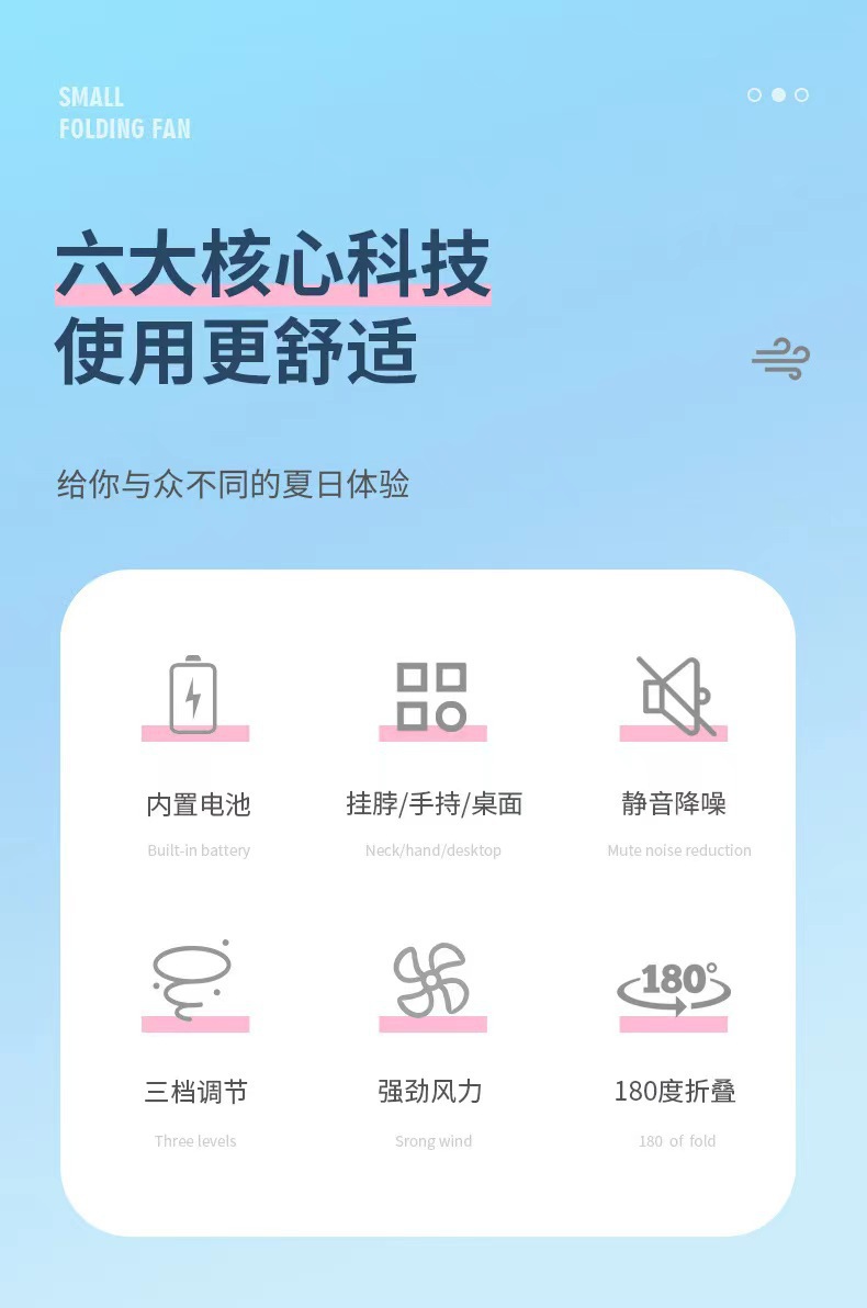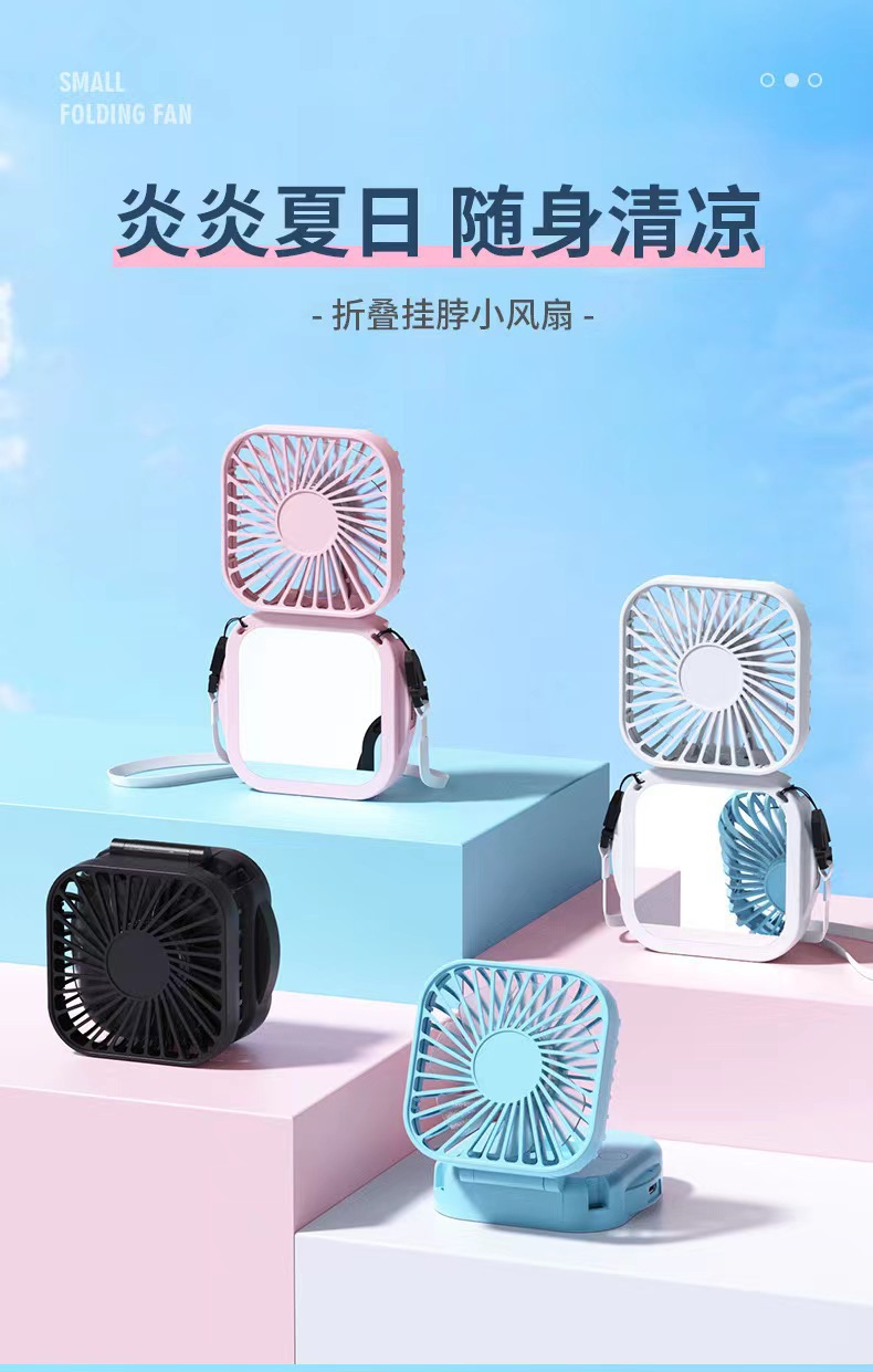 新款迷你挂脖折叠小风扇 办公户外手持便携USB充电多功能桌面风扇