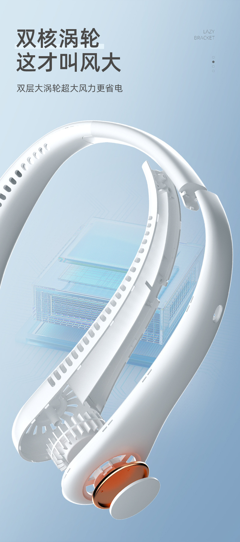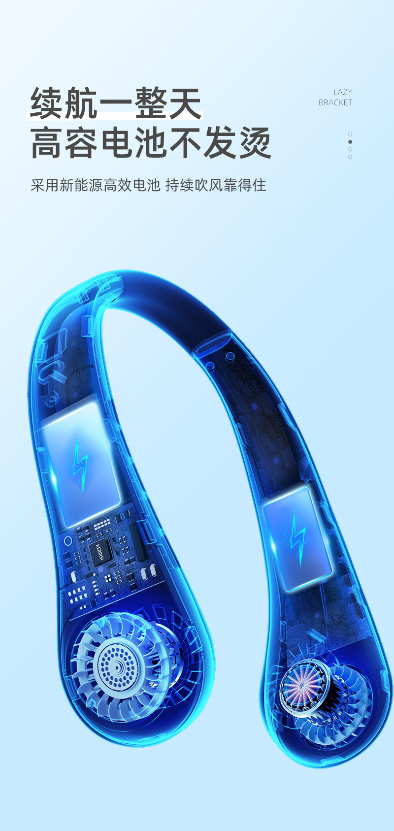 新款无叶挂脖小风扇静音无刷挂脖便携式风扇折叠USB充电运动挂颈