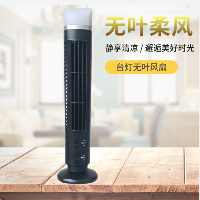 跨境带灯桌面USB无叶风扇创意学生办公家用LED护眼灯迷你塔扇厂价