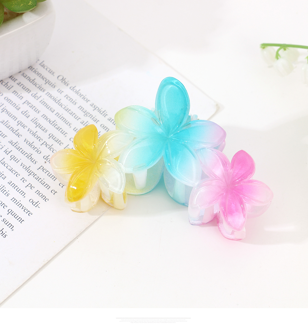 欧美跨境彩色鸡蛋花发夹花朵抓夹复古女士侧抓半抓后脑勺鲨鱼夹