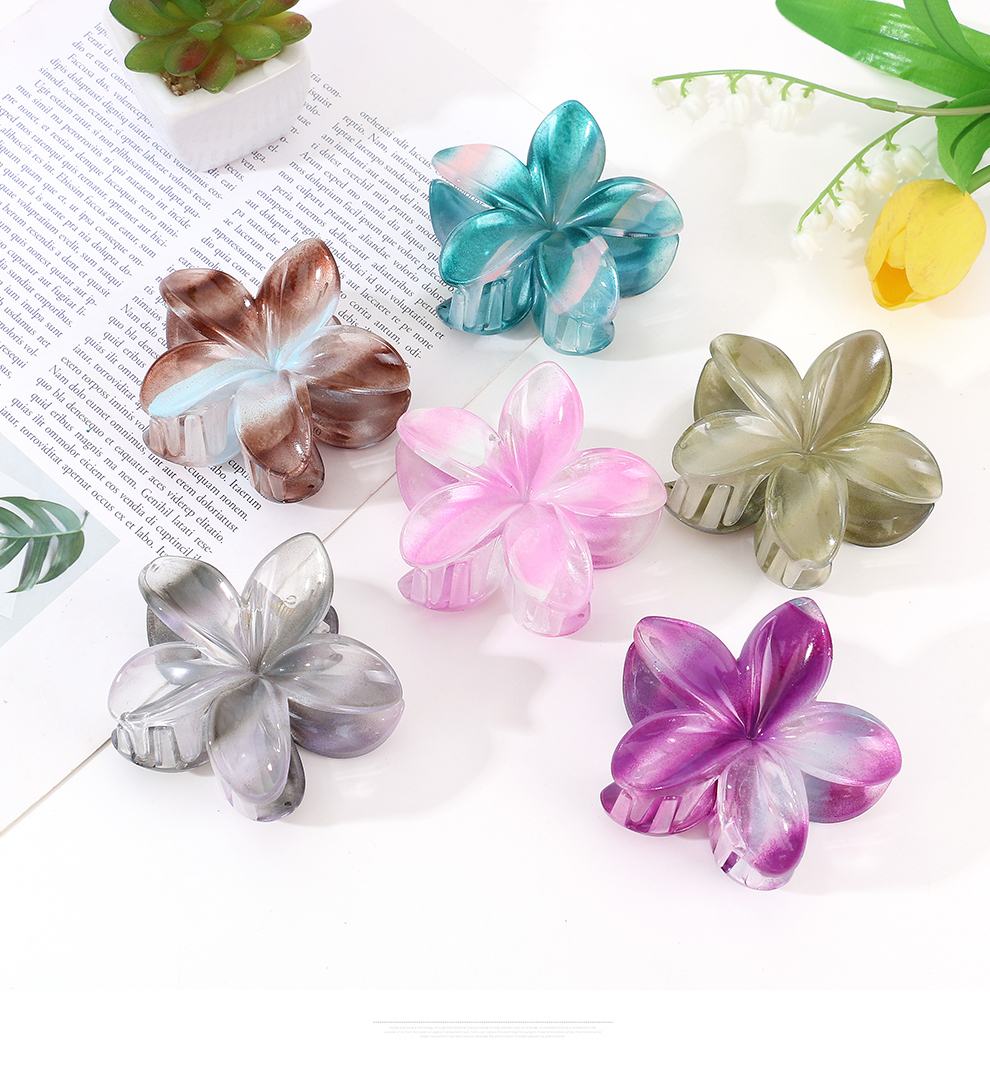 渐变彩色甜美海滩度假风鸡蛋花抓夹爆款新款女半扎发饰跨境批发