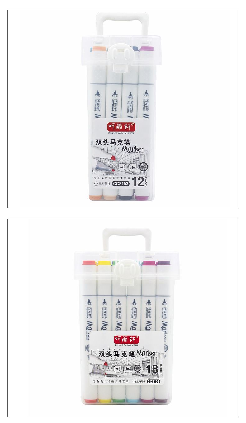厂家直供听雨轩-8103双头马克笔 双头儿童美术硬头马克笔酒精油性