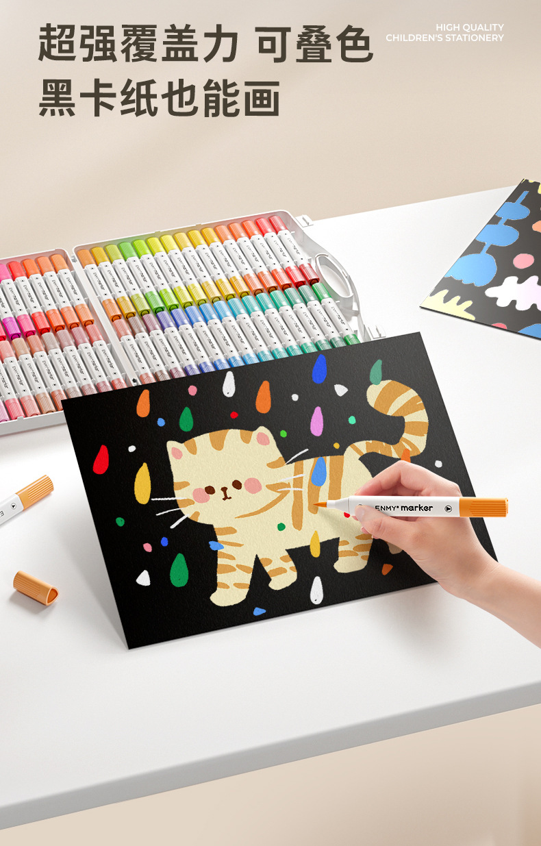 恩米双头丙烯马克笔软头不透色可叠色彩笔儿童专用画画水彩笔80色