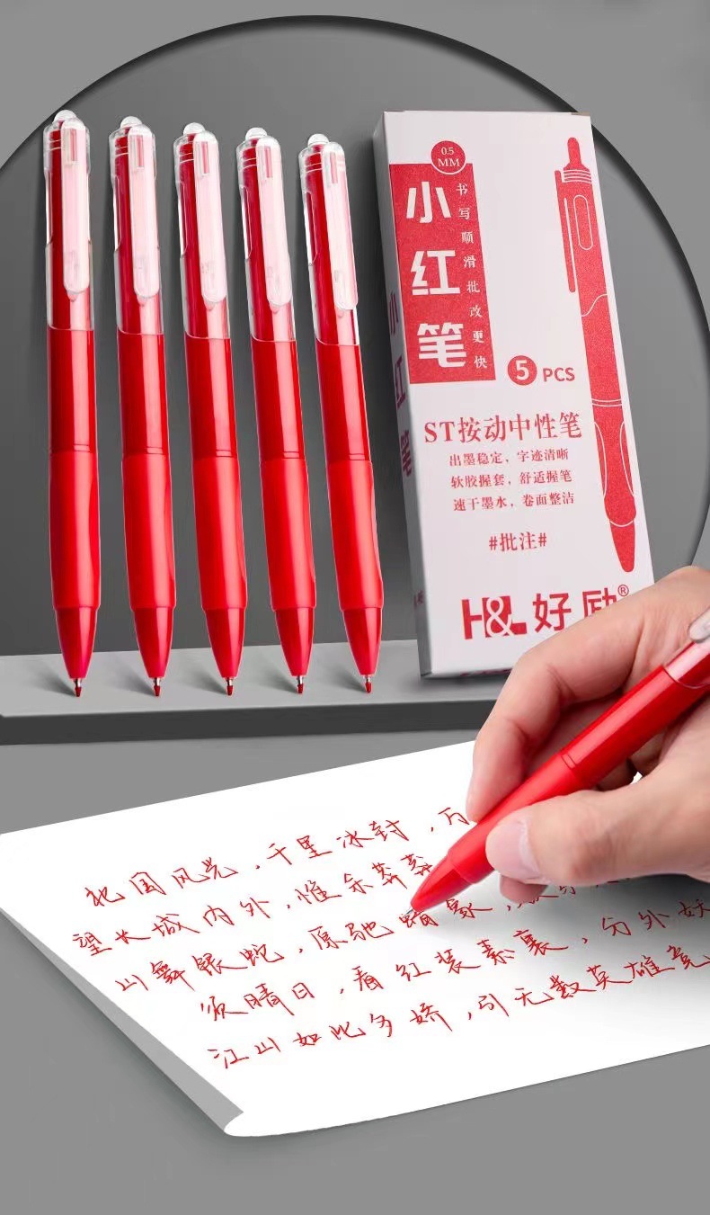 好励教师批改红笔0.5m刷题小红书同款按动中性笔水笔碳素笔水性笔