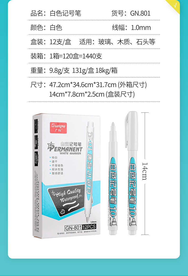 白色记号笔 防水速干油漆笔美术高光小白笔学生diy贺卡手工涂鸦笔