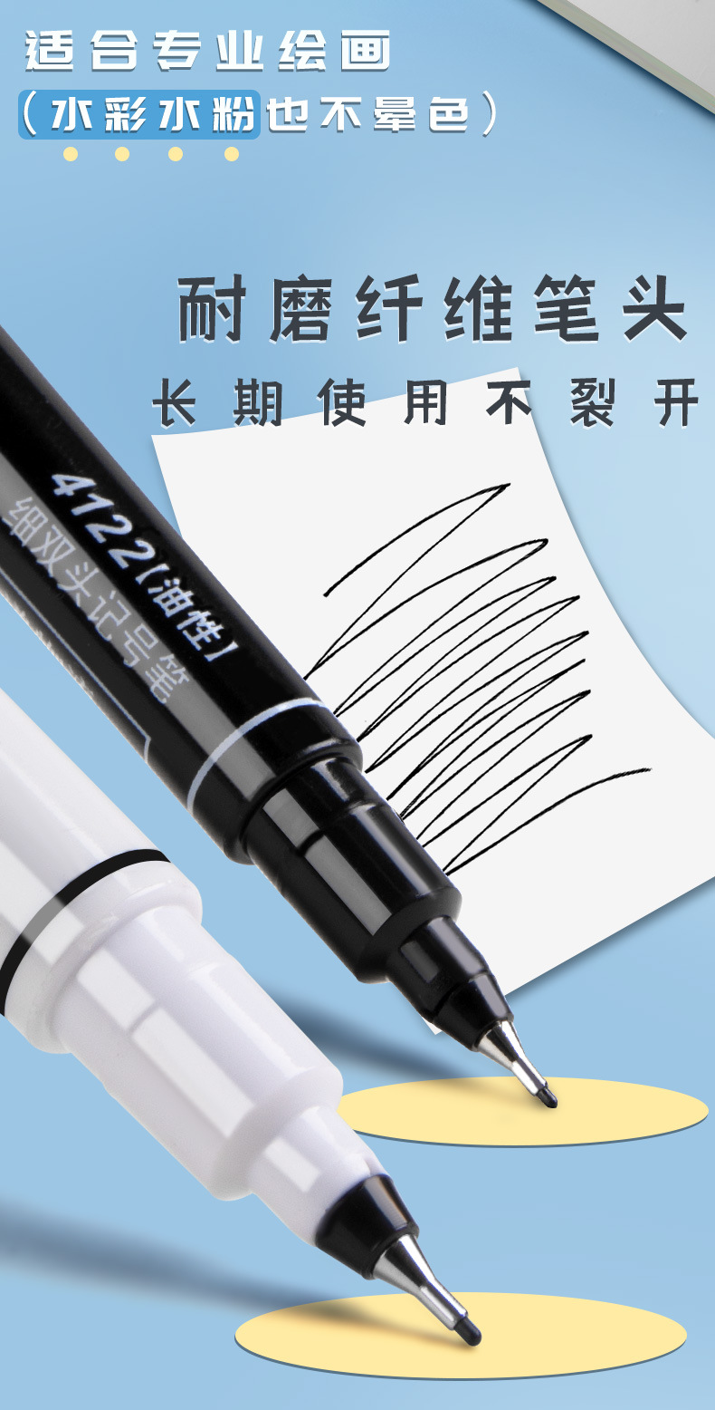 双头细头记号笔双头记号笔细头学生美术专用防水勾线笔油性记号笔