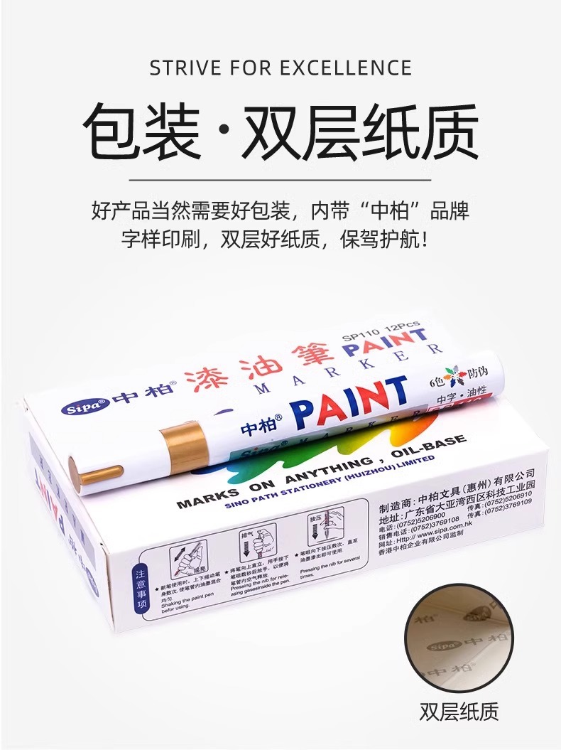 正品中柏油漆笔SP-110防水不掉色油性工业白色记号笔轮胎笔补漆笔