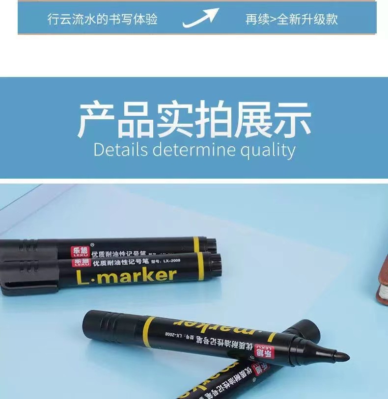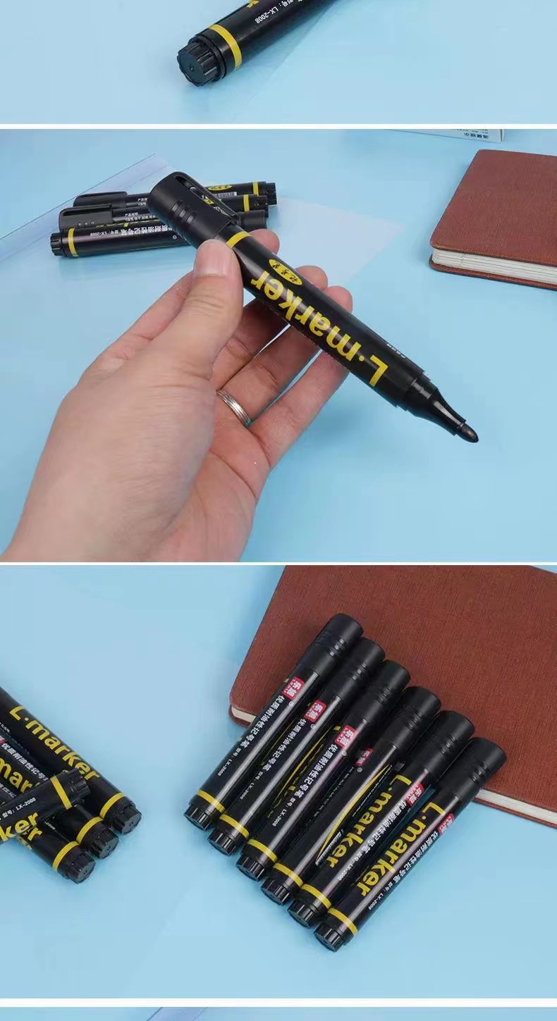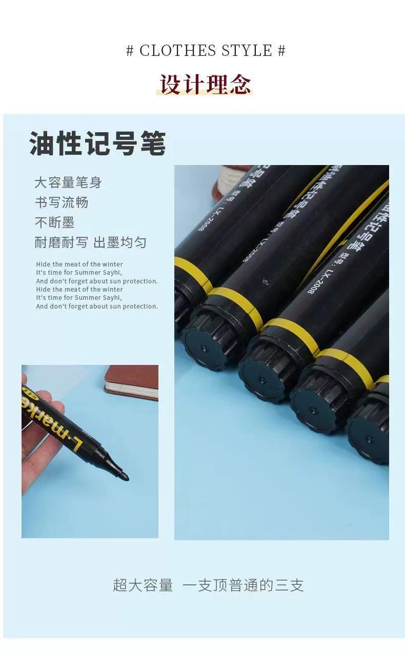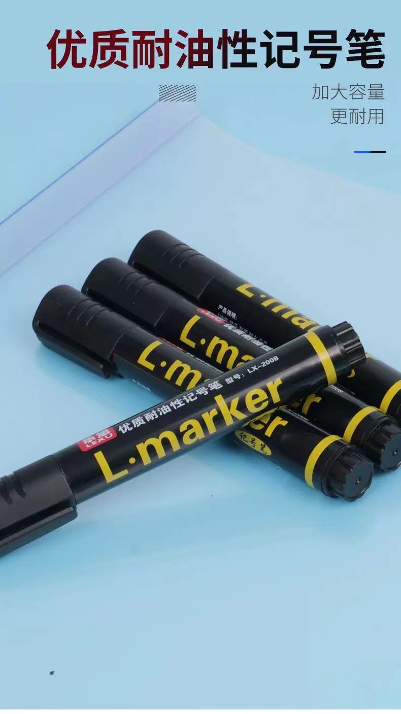 乐旭2008防水油性记号笔速干黑色粗笔芯物流快递施工耐用记号笔