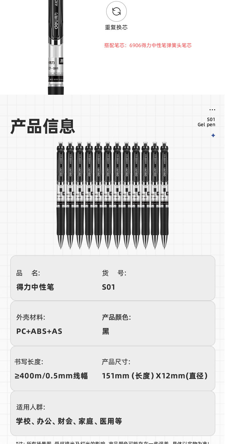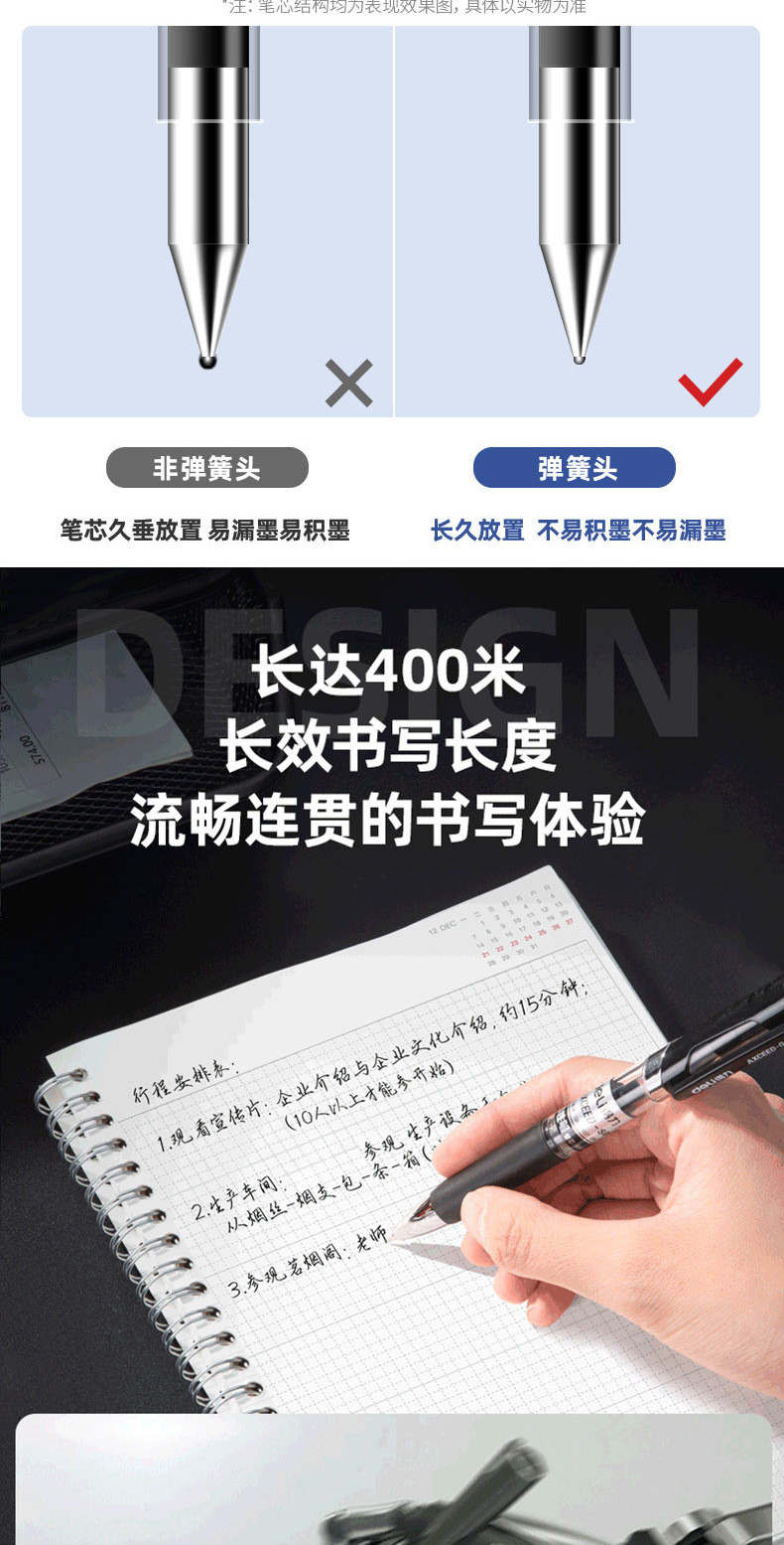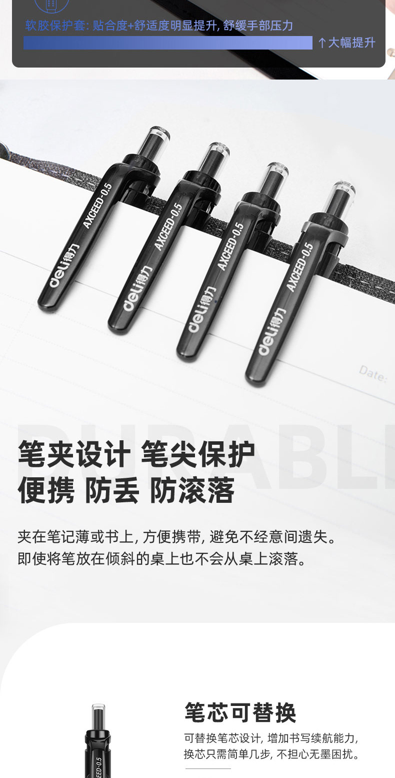 得力S01中性签字笔 0.5子弹头经典办公学习高颜值按动笔黑蓝水笔