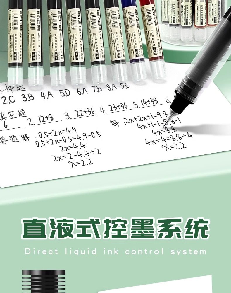 【100支】直液式速干走珠笔大容量中性笔黑红笔针管学生考试办公