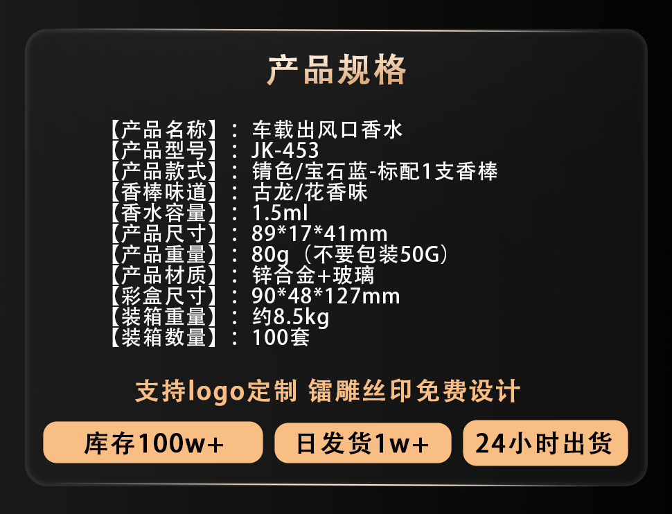 车载香水出风口汽车内饰香薰夹摆件古龙花香持久淡香精油车载香薰