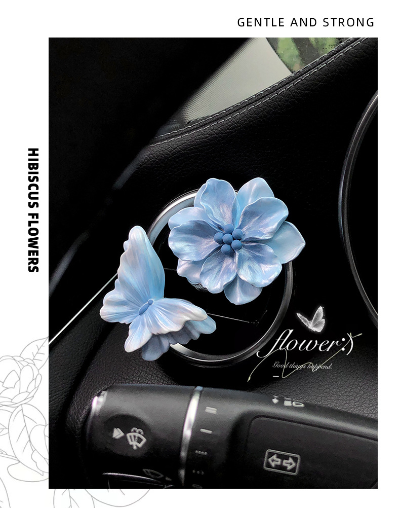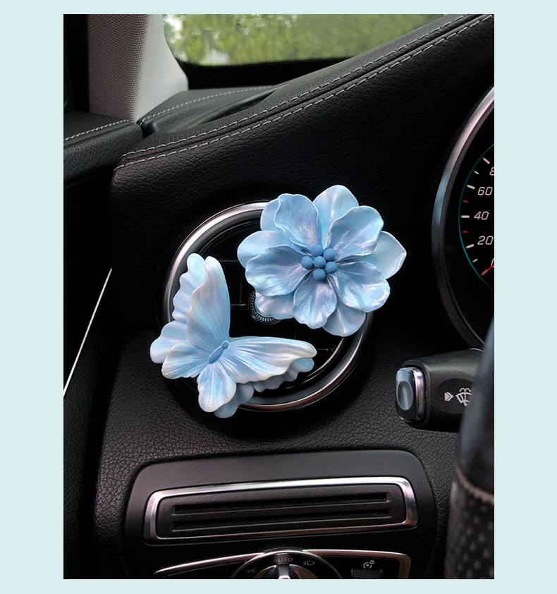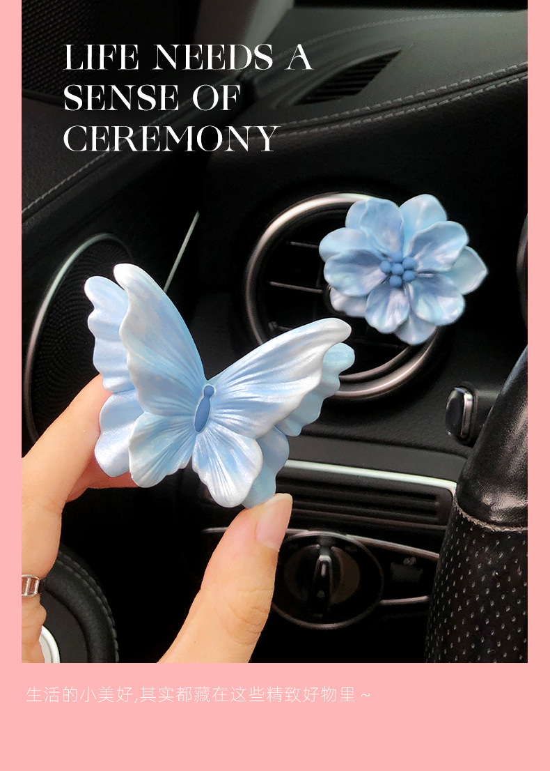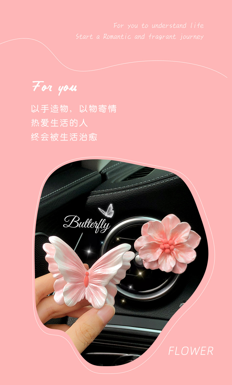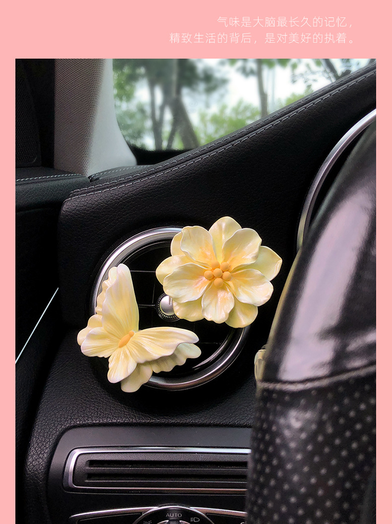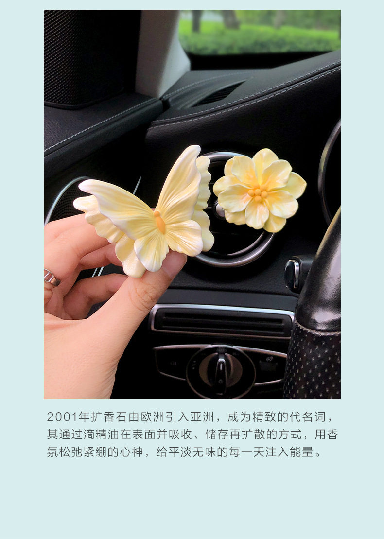 蝶恋花车载香薰香水汽车出风口装饰品花朵女生车内饰品摆件扩香石