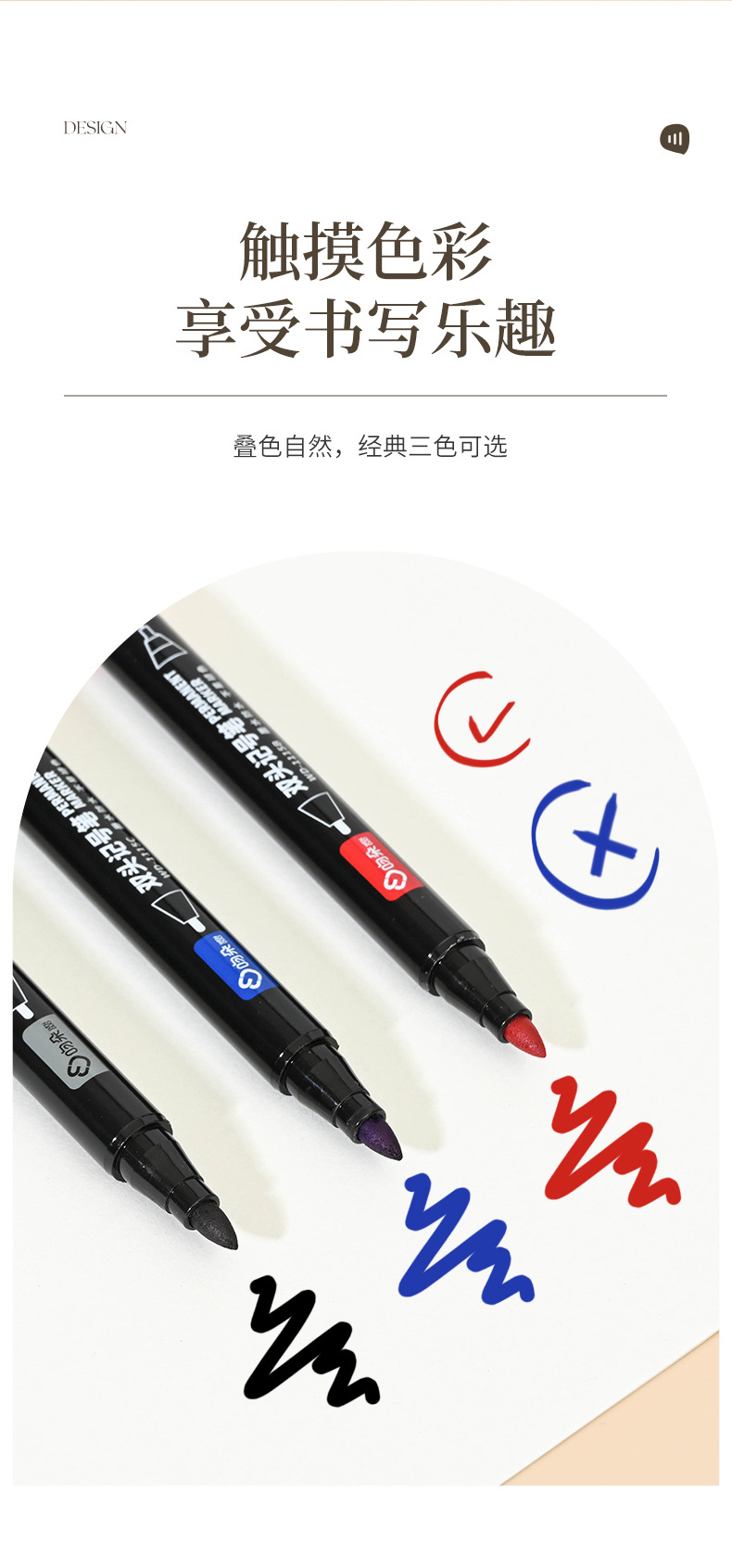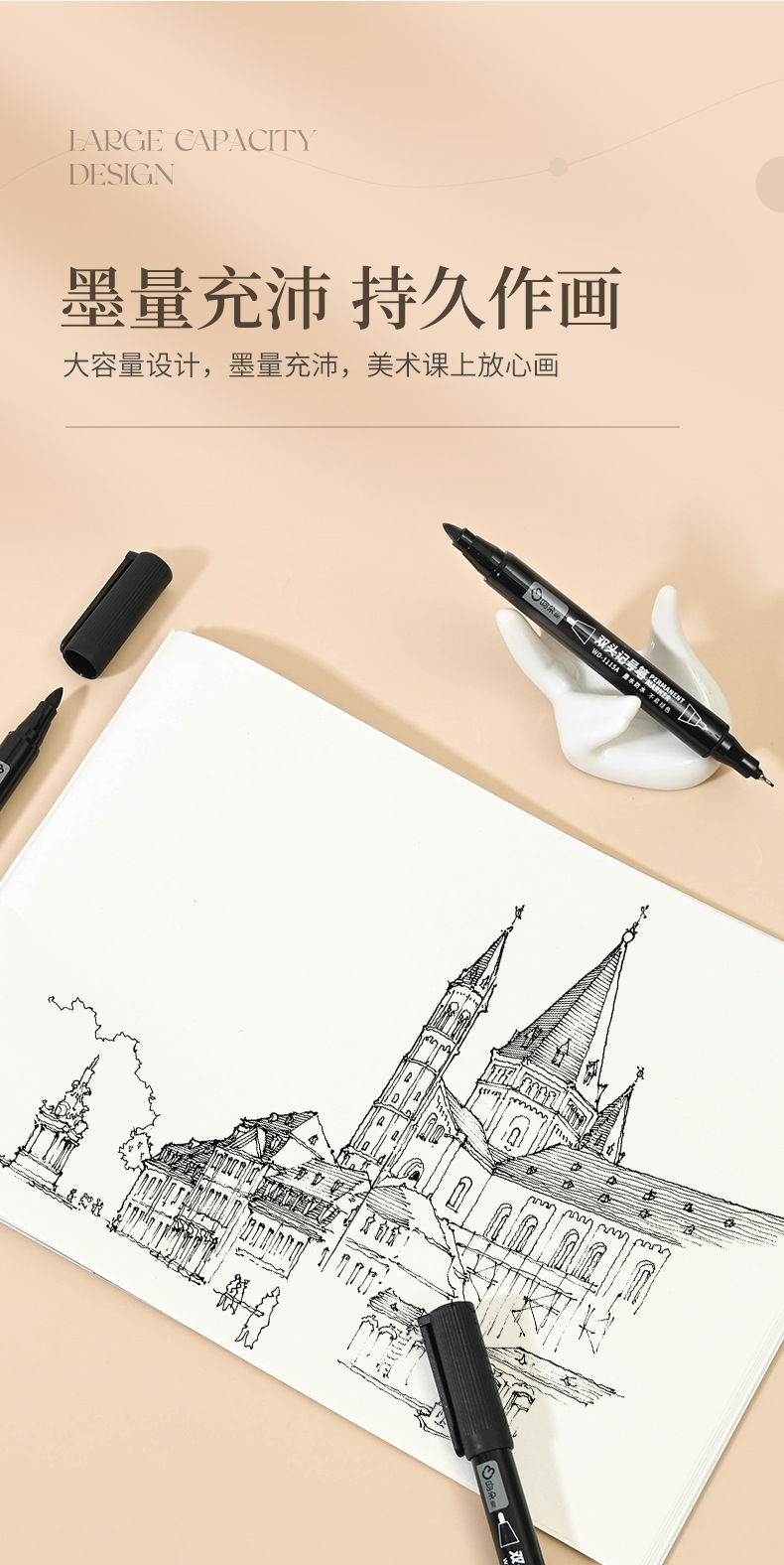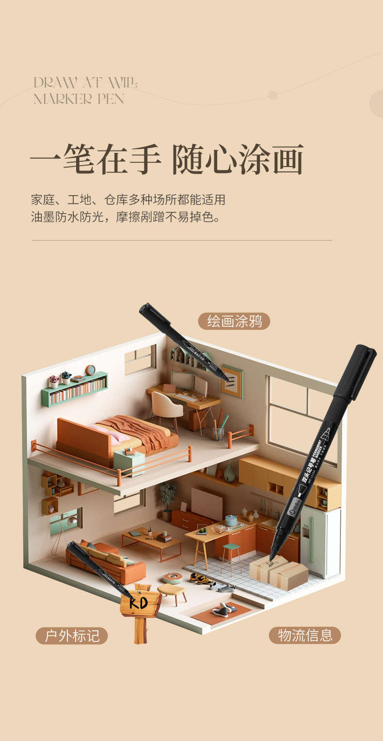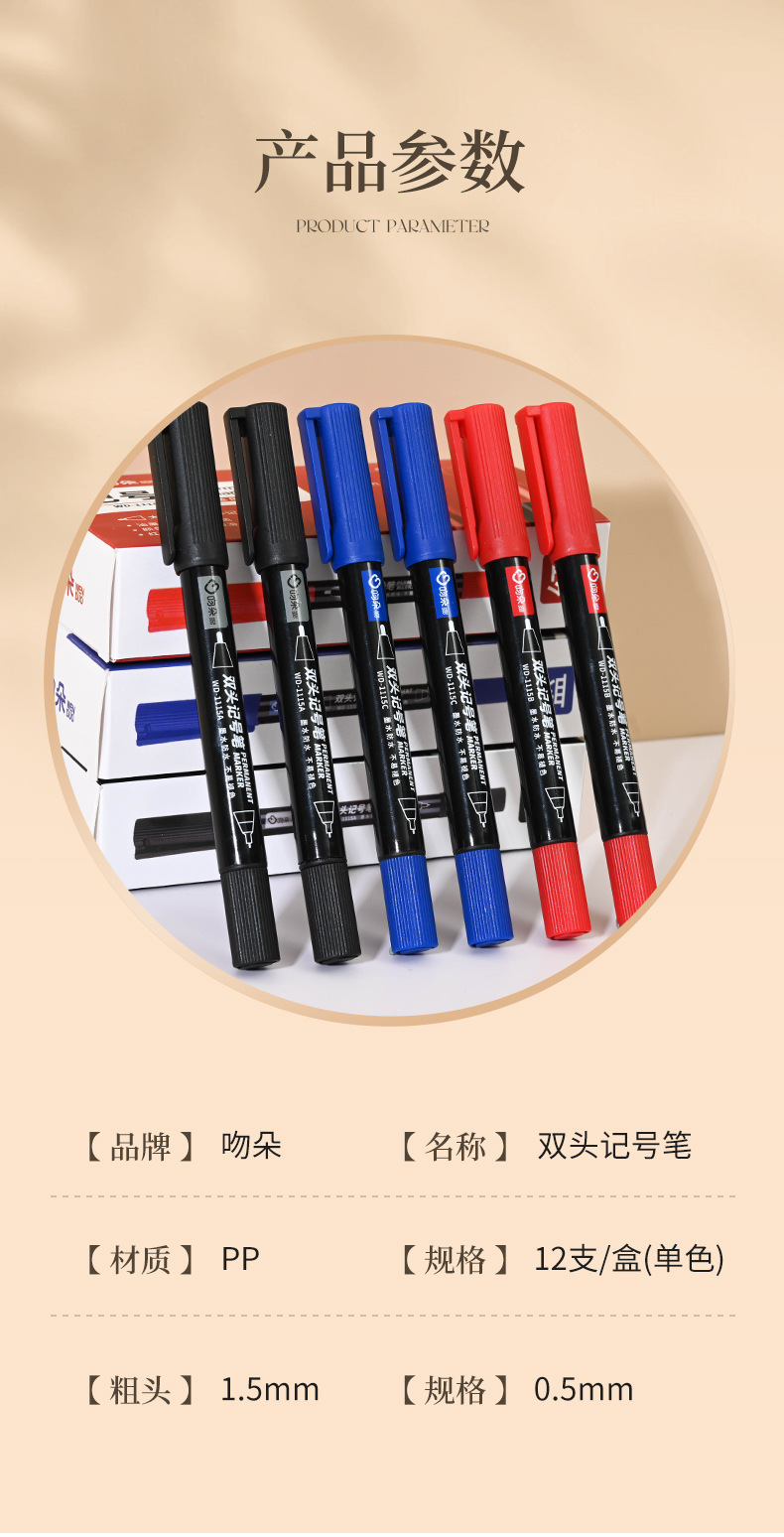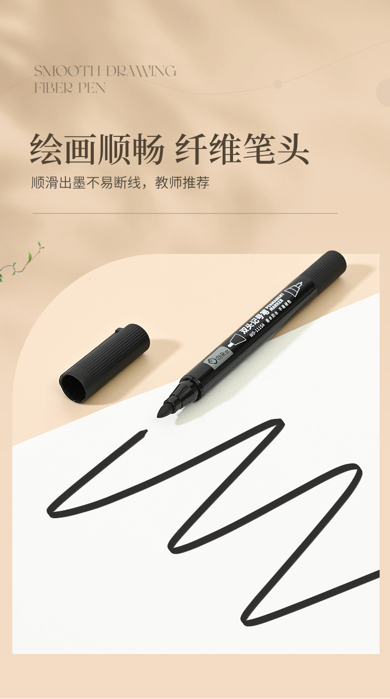 吻朵双头记号笔一粗一细油性擦不掉黑色勾线笔防水不晕染美术专用