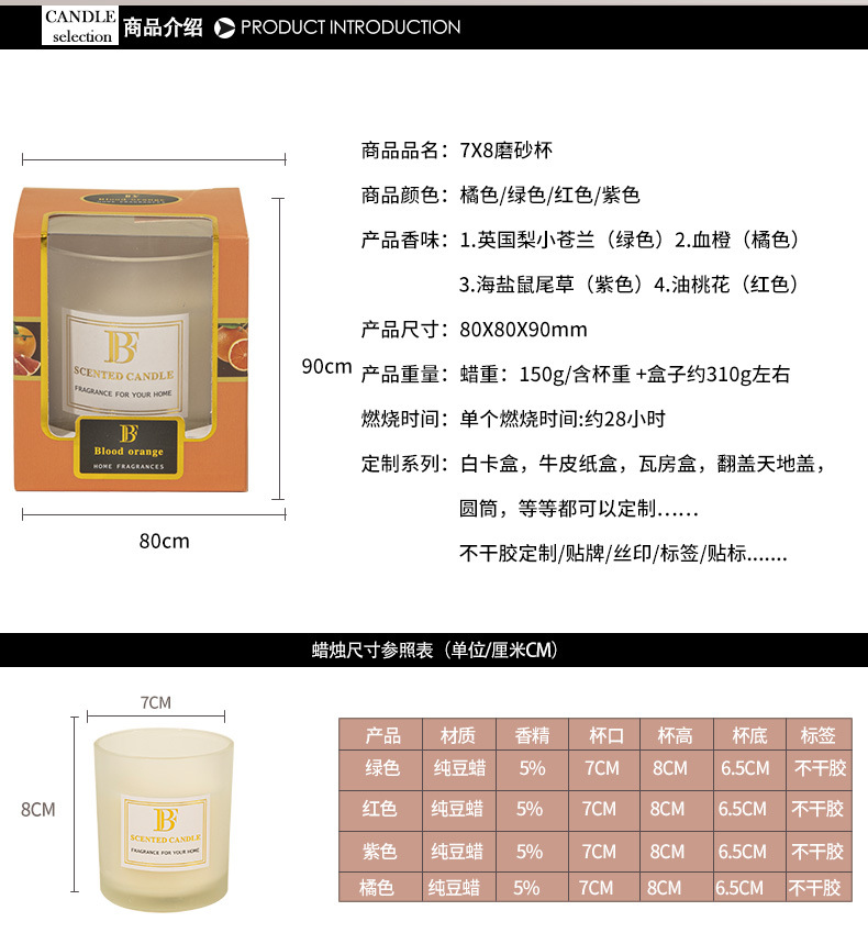 香薰蜡烛室内卧室持久高级家用小众香氛杯形玻璃杯批发