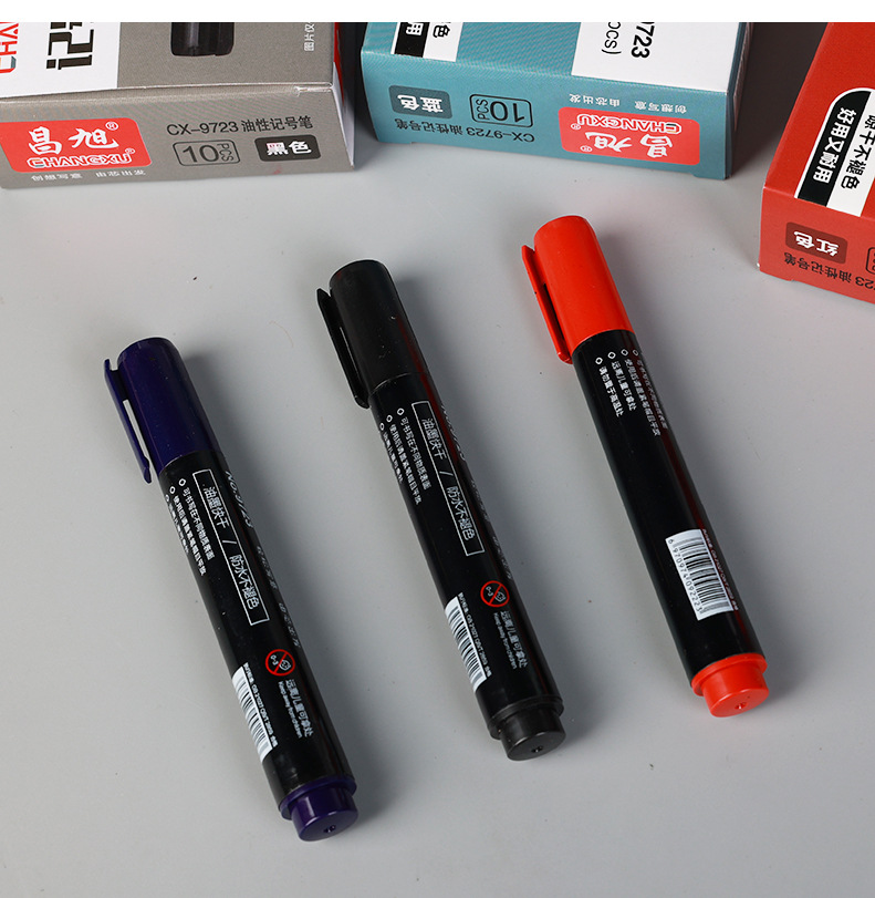昌旭9723油性记号笔盒装大容量黑色红色蓝色大头笔快干物流签字笔