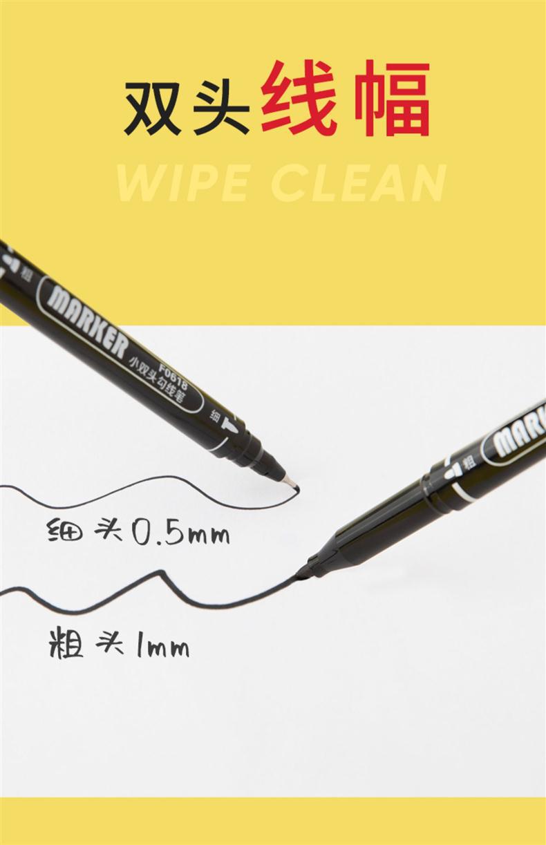 小双头勾线笔黑色油性签名笔双头笔儿童绘画速干描边小细头记号
