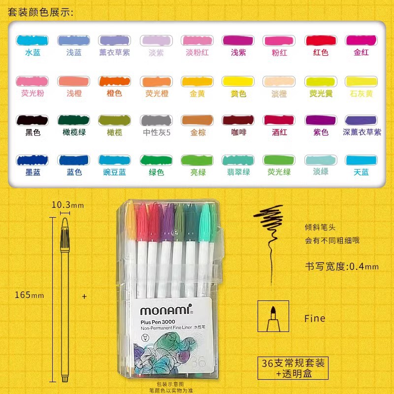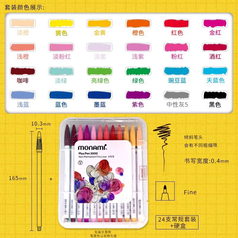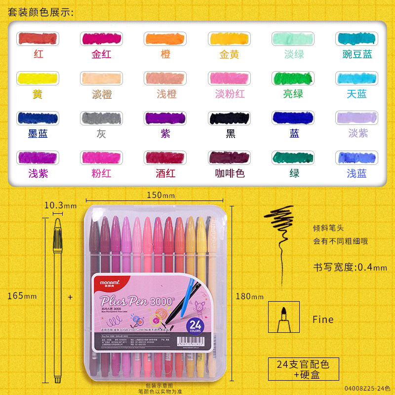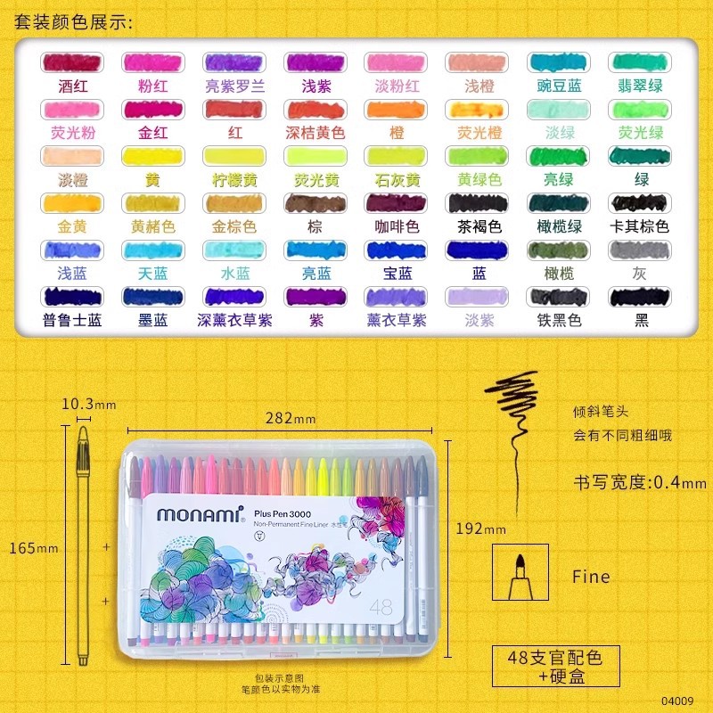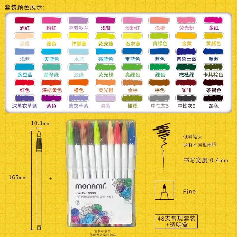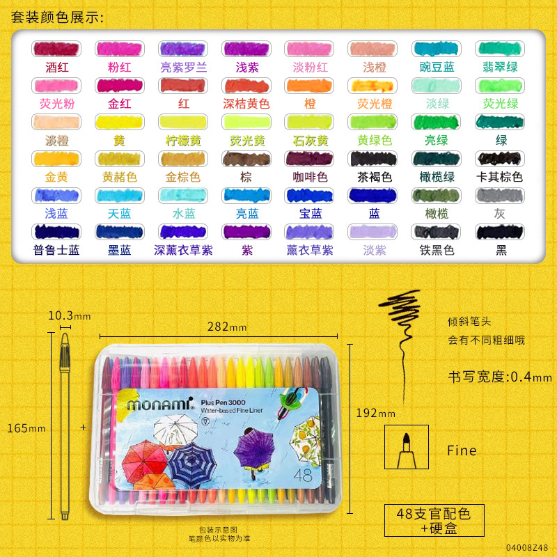 慕那美3000纤维水性水彩笔勾线笔慕娜美纤维笔中性解压笔60色批发