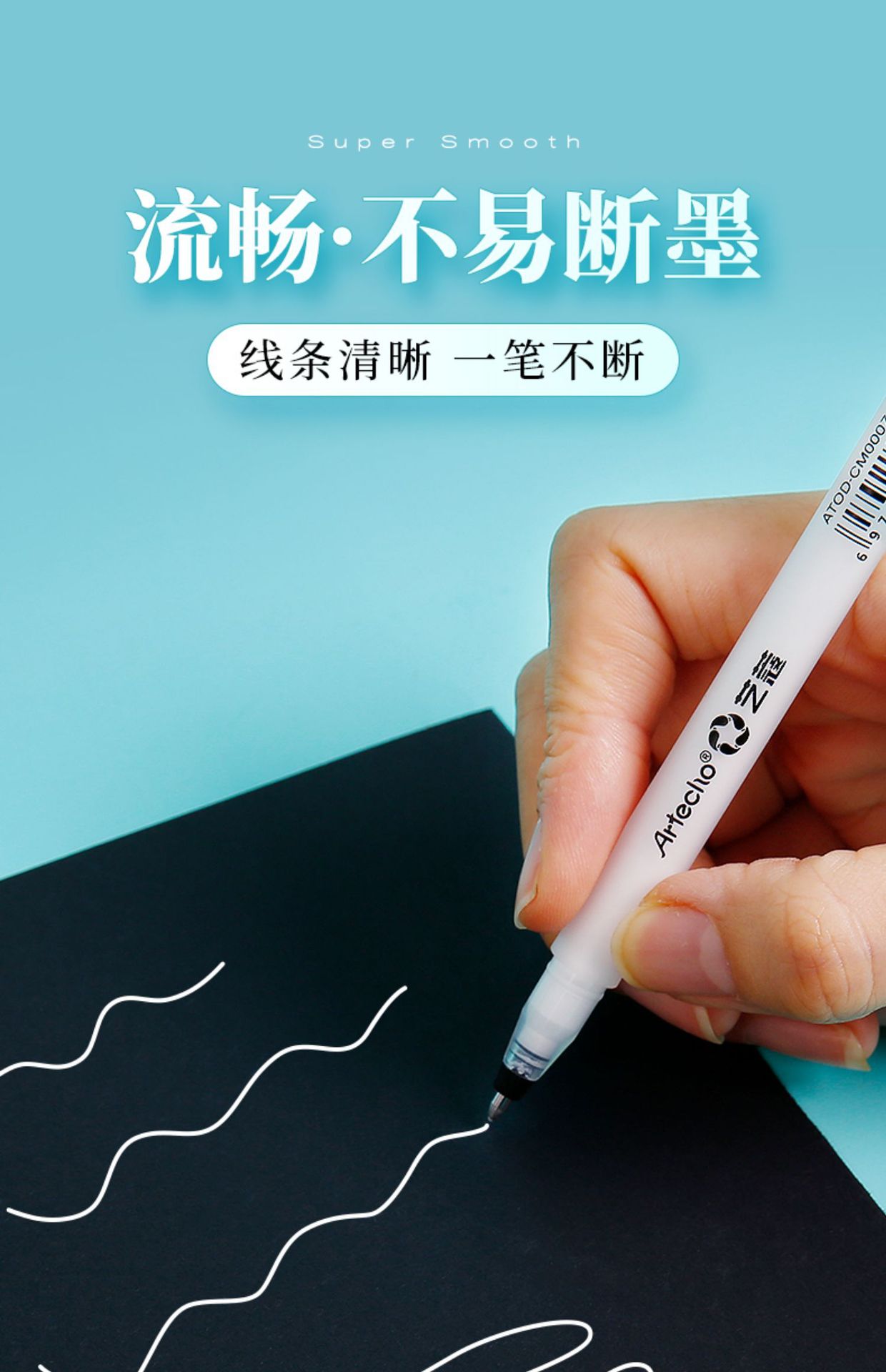 蒙玛特艺蔻系列高光笔美术生专用1mm细头白笔画漫画记号笔高光笔