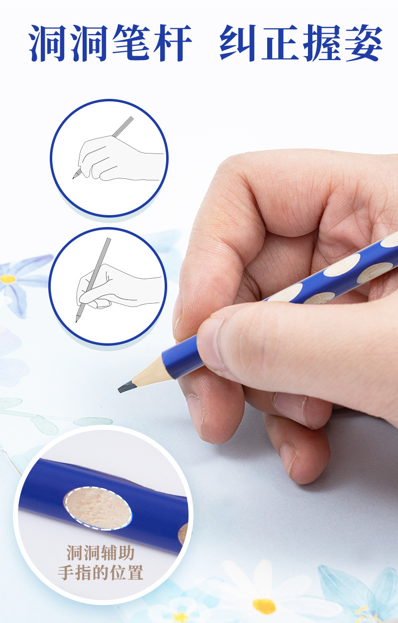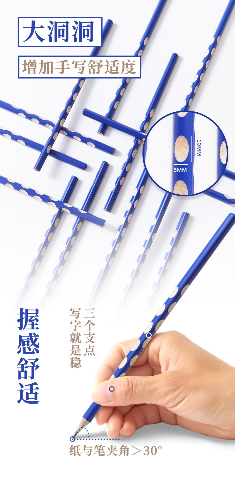 免费刻字洞洞笔小学生文具奖品HB三角杆儿童矫正握姿铅笔定制刻字