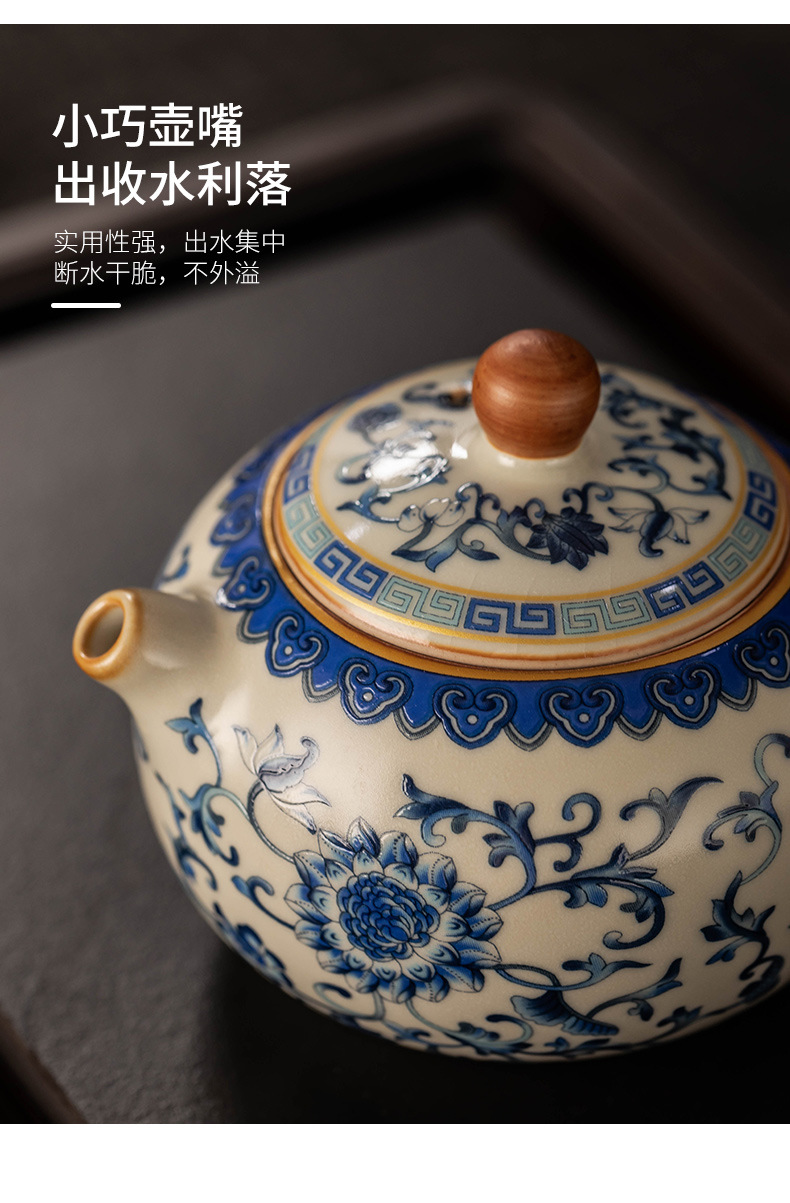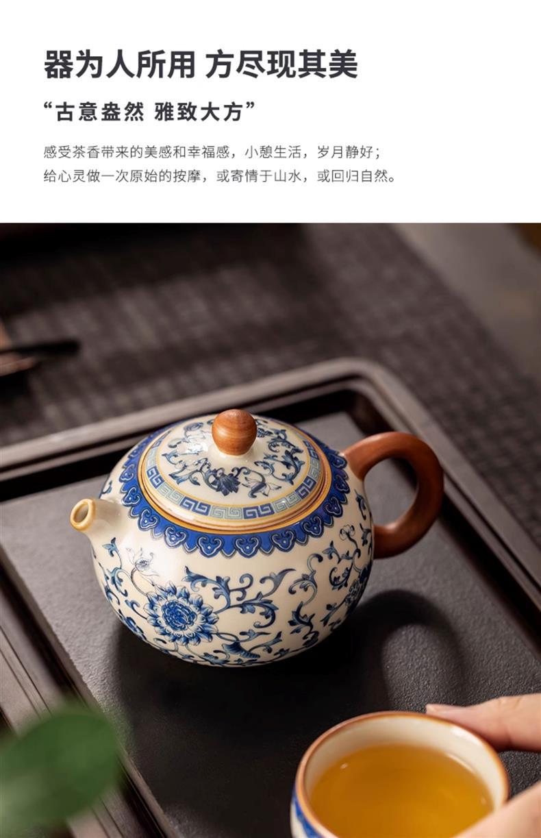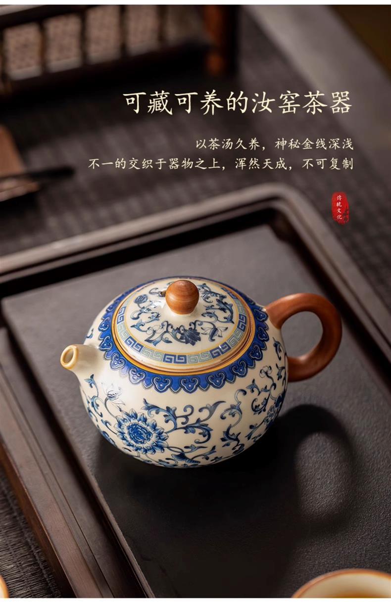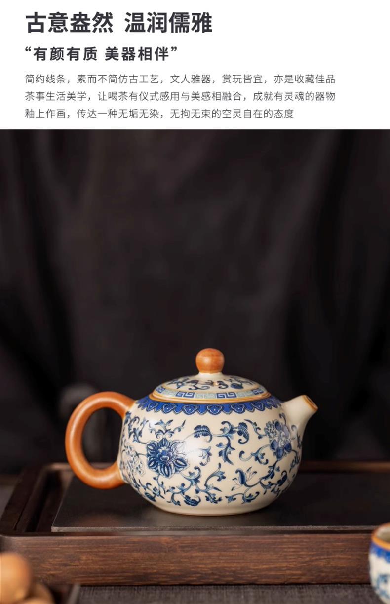 2024新款青花瓷汝窑西施茶壶单壶泡茶家用高档陶瓷功夫茶具沏茶壶