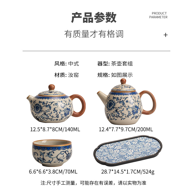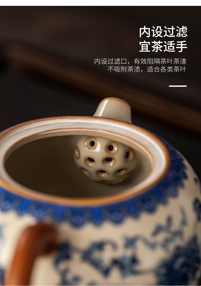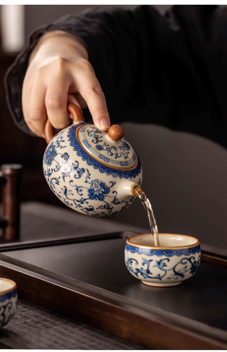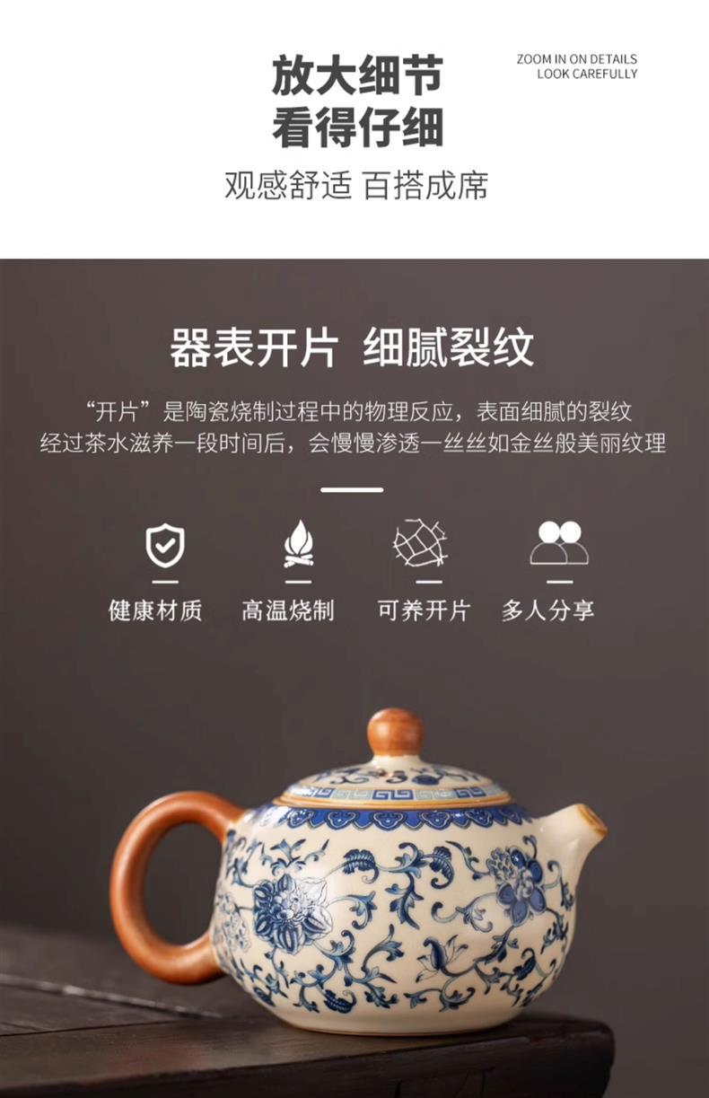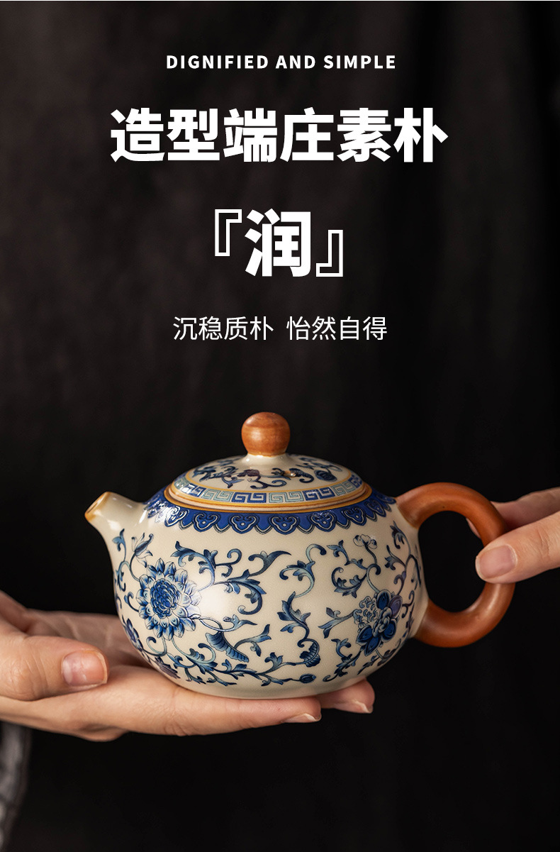 2024新款青花瓷汝窑西施茶壶单壶泡茶家用高档陶瓷功夫茶具沏茶壶