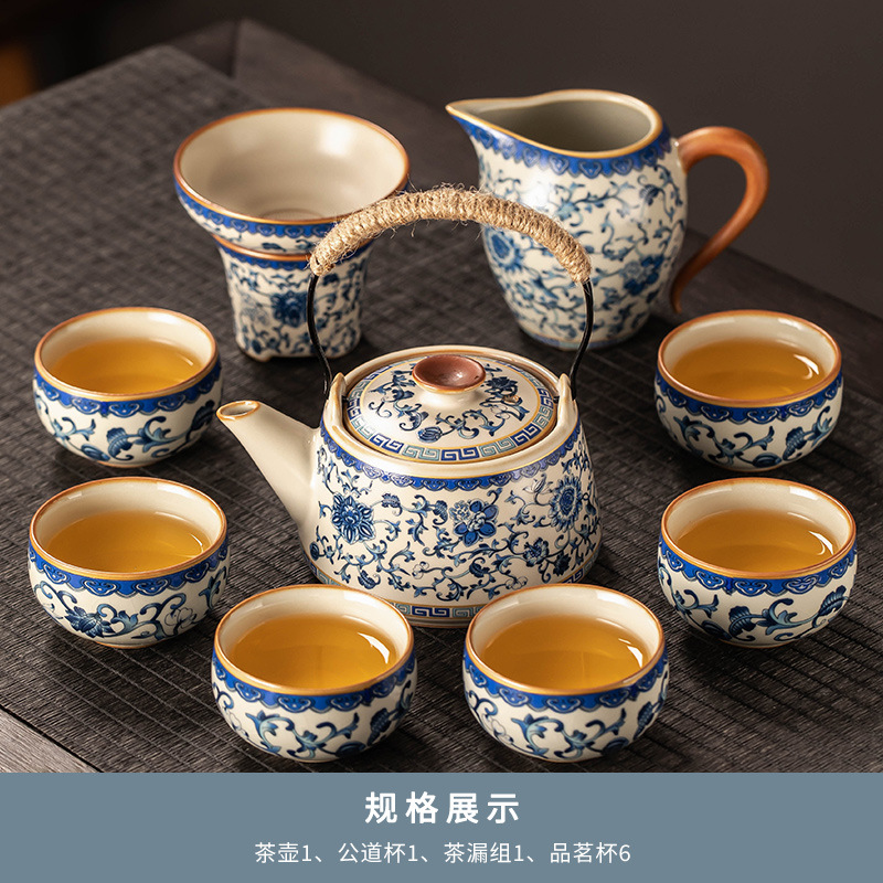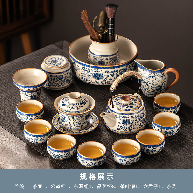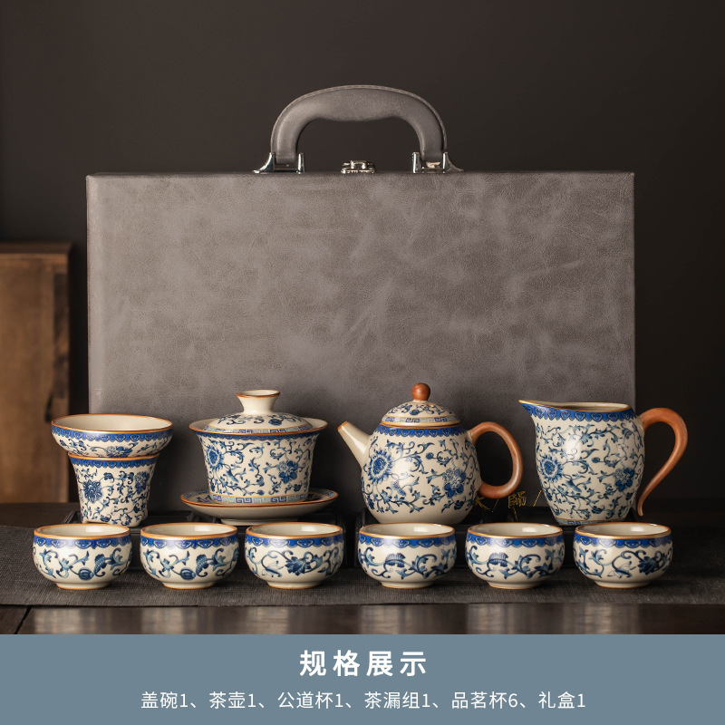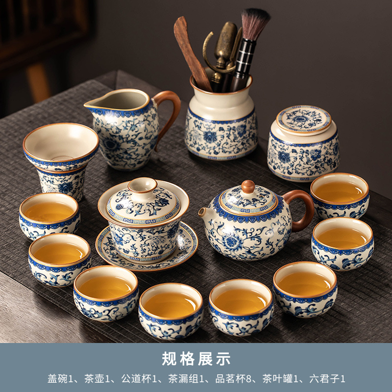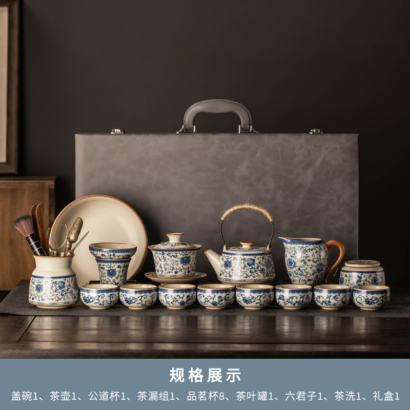 青花黄汝窑茶具套装家用轻奢高档陶瓷泡茶壶功夫茶杯整套伴手礼