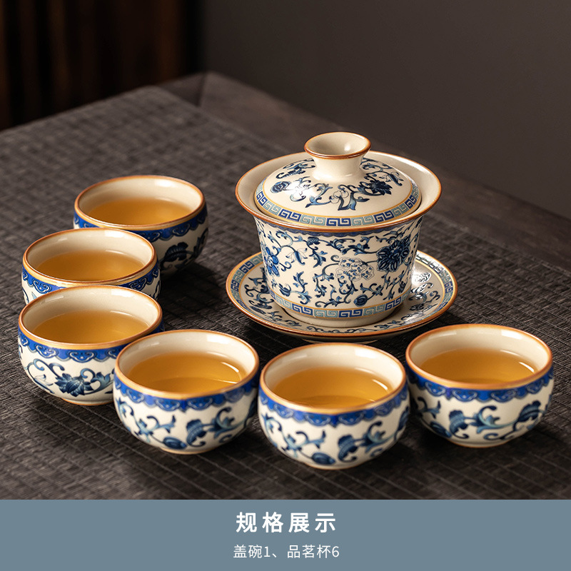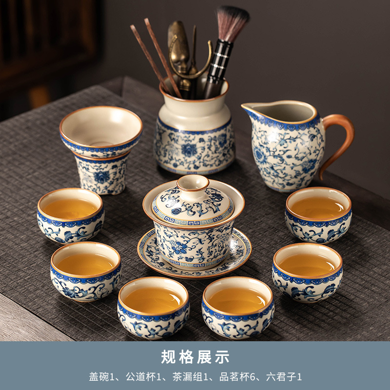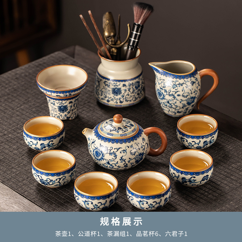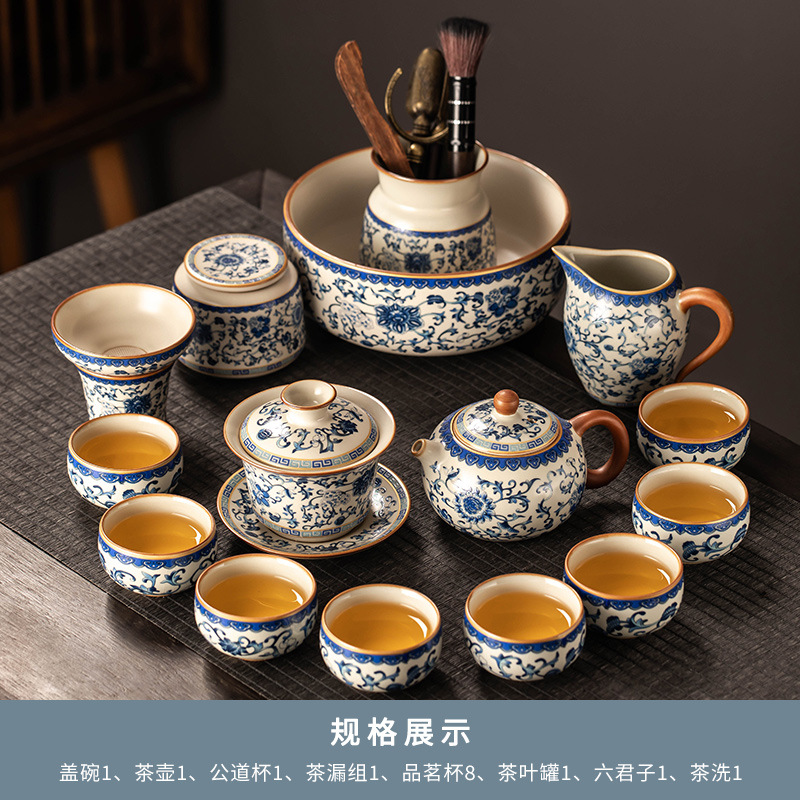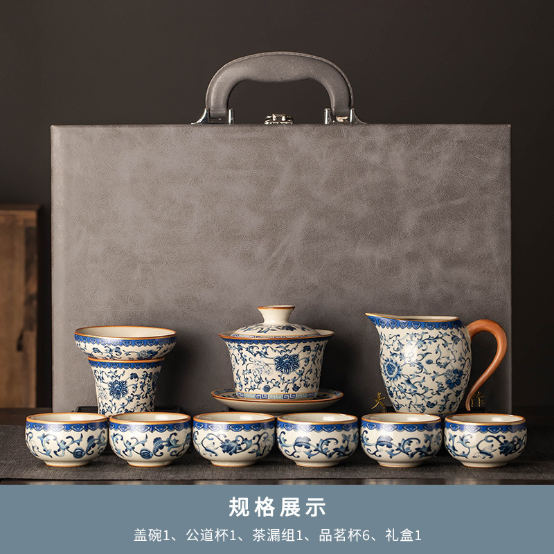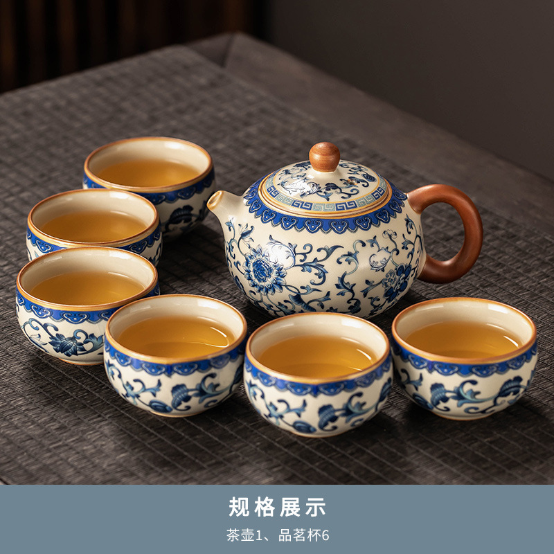 青花黄汝窑茶具套装家用轻奢高档陶瓷泡茶壶功夫茶杯整套伴手礼