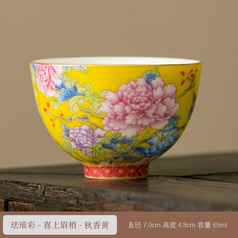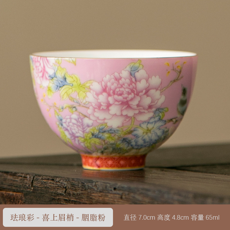 珐琅彩茶杯陶瓷茶具宫廷扒花功夫茶器大主人品茗单杯套装礼盒装