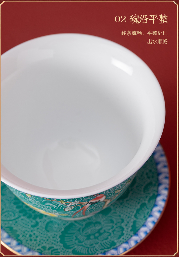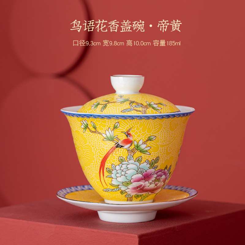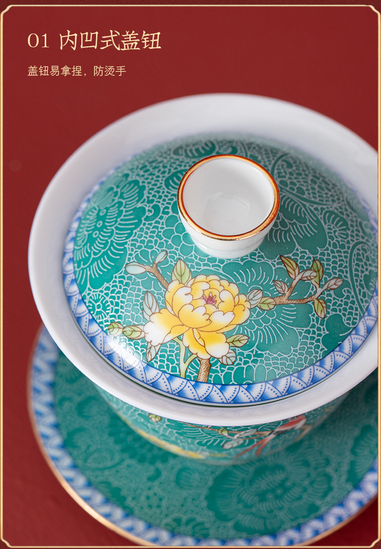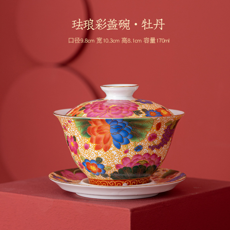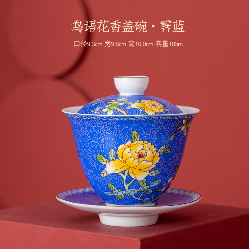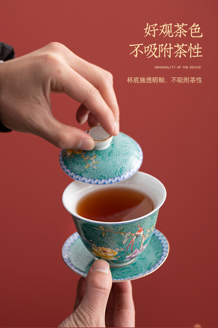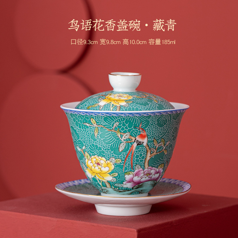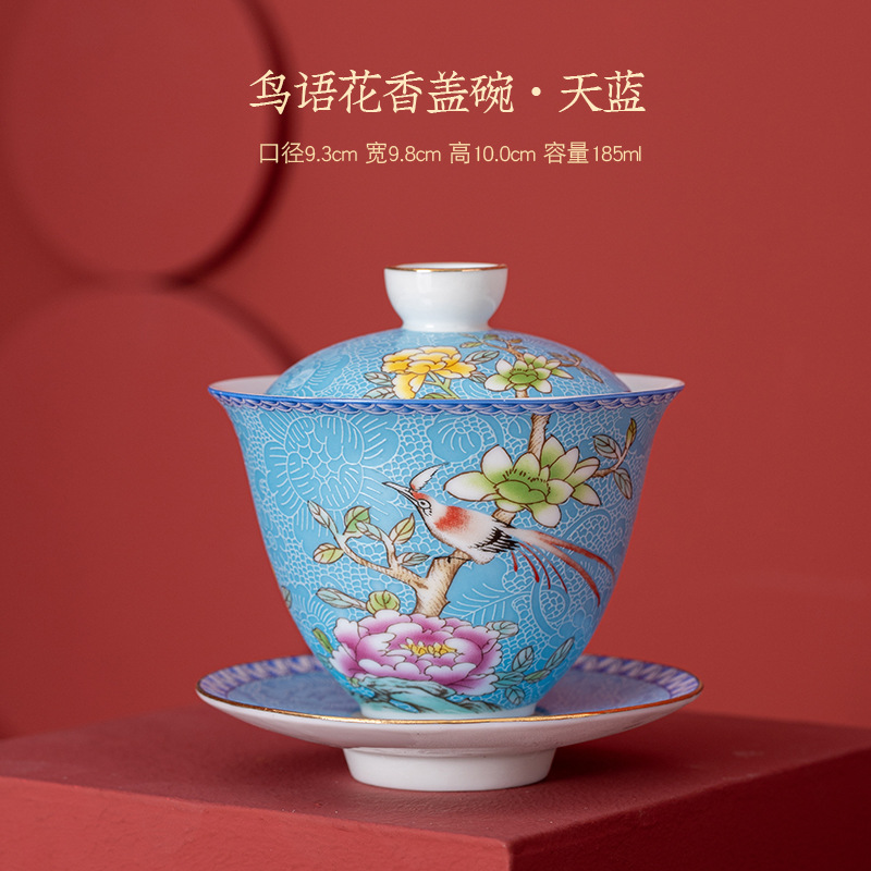 陶瓷珐琅彩绘盖碗单个大号家用三才盖碗功夫茶具泡茶碗敬茶碗批发