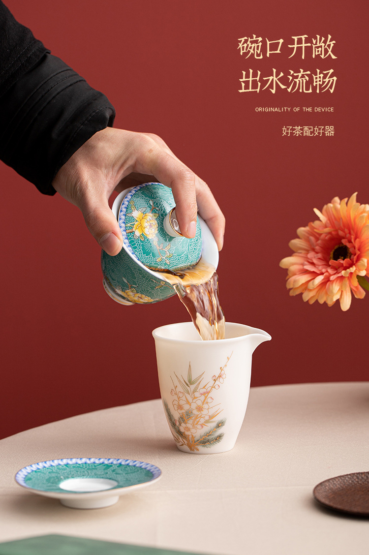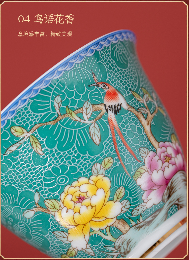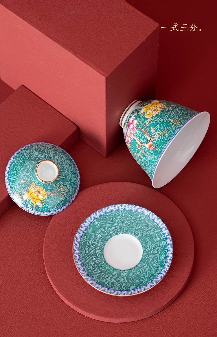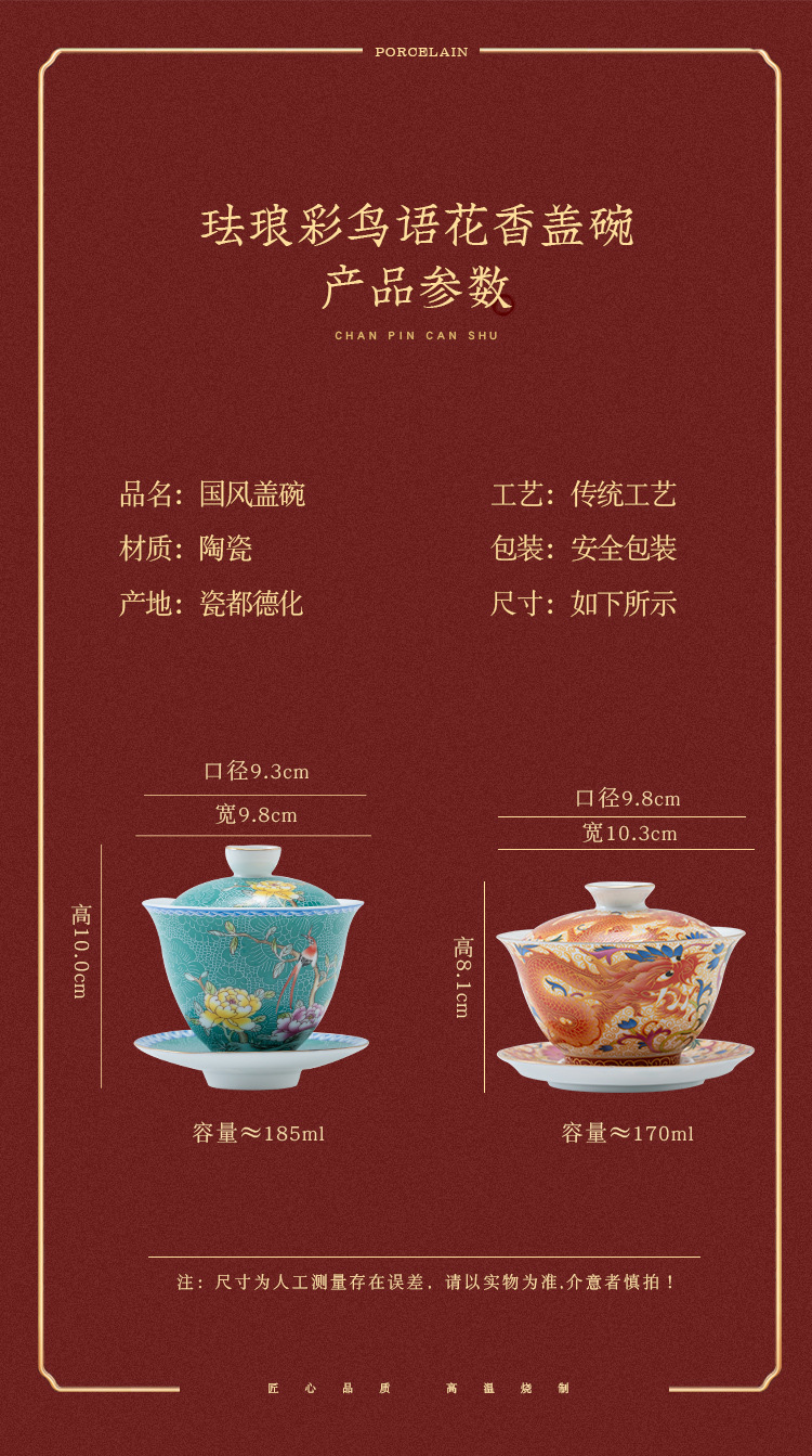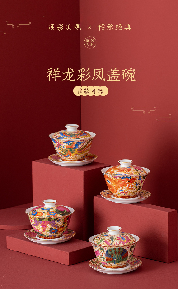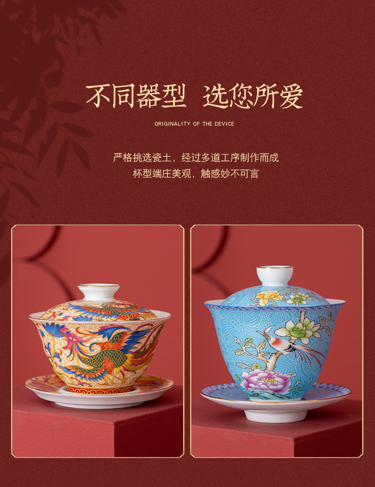 陶瓷珐琅彩绘盖碗单个大号家用三才盖碗功夫茶具泡茶碗敬茶碗批发