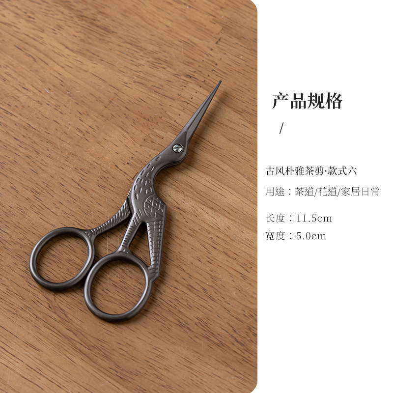 中式家用小剪刀茶道配件手工剪纸刀不锈钢茶叶袋包线头剪子批发