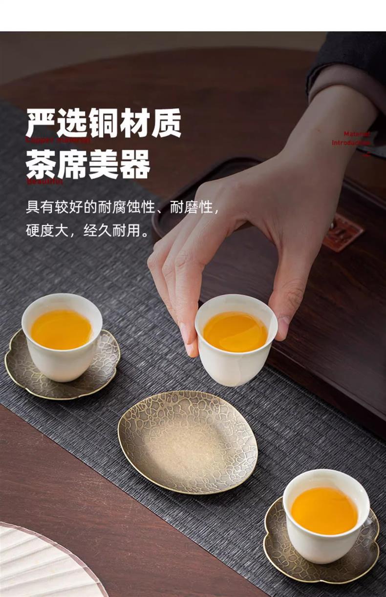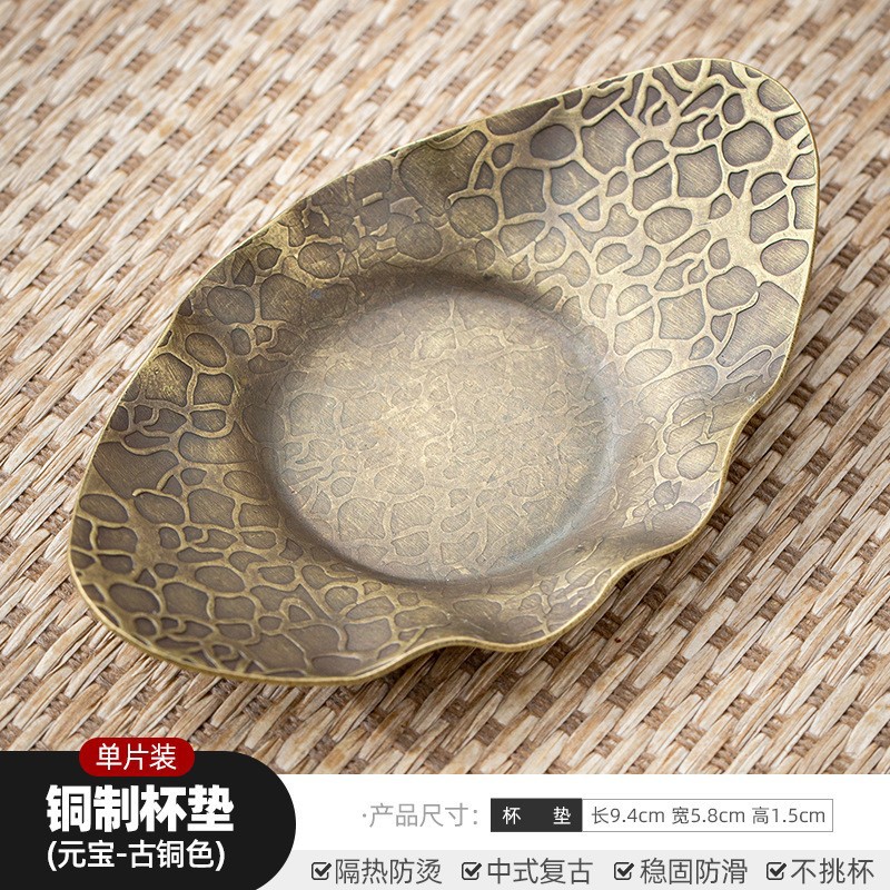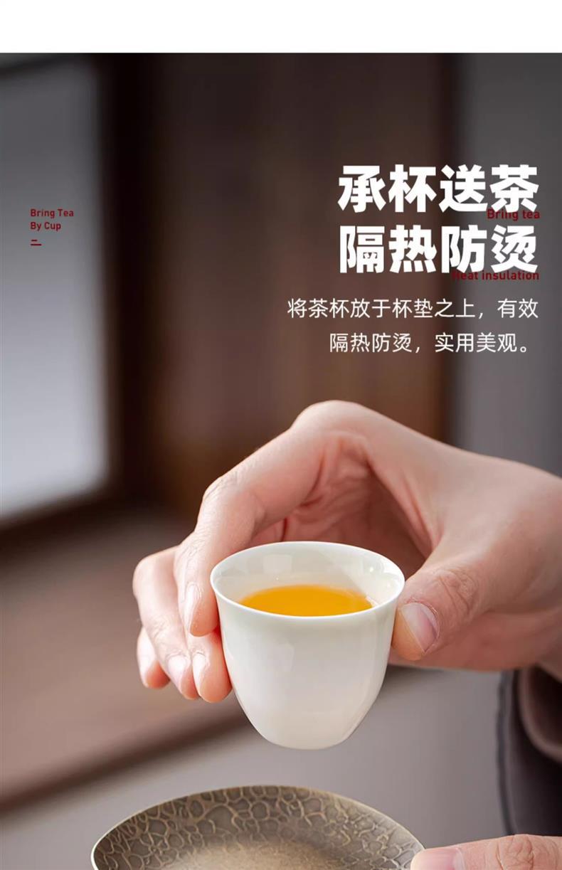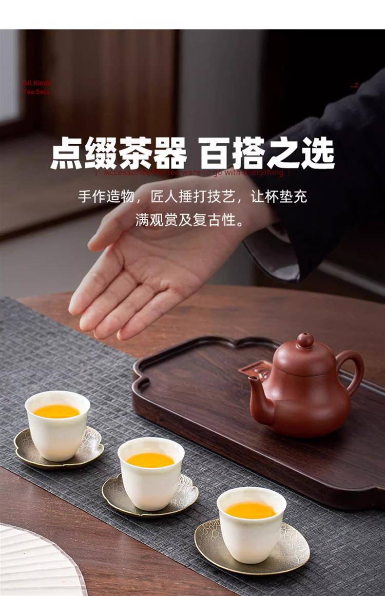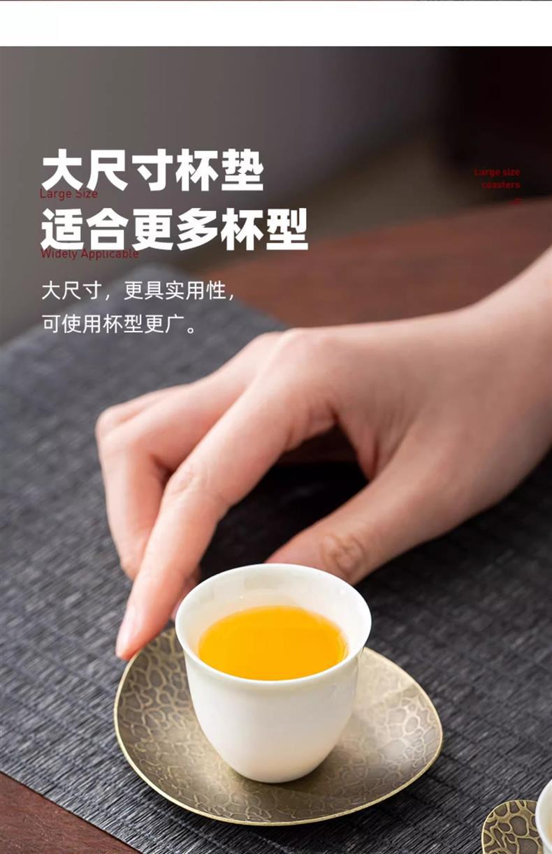 中式手工纯铜杯垫锤纹复古杯托隔热防滑圆形茶托杯碟功夫茶具批发