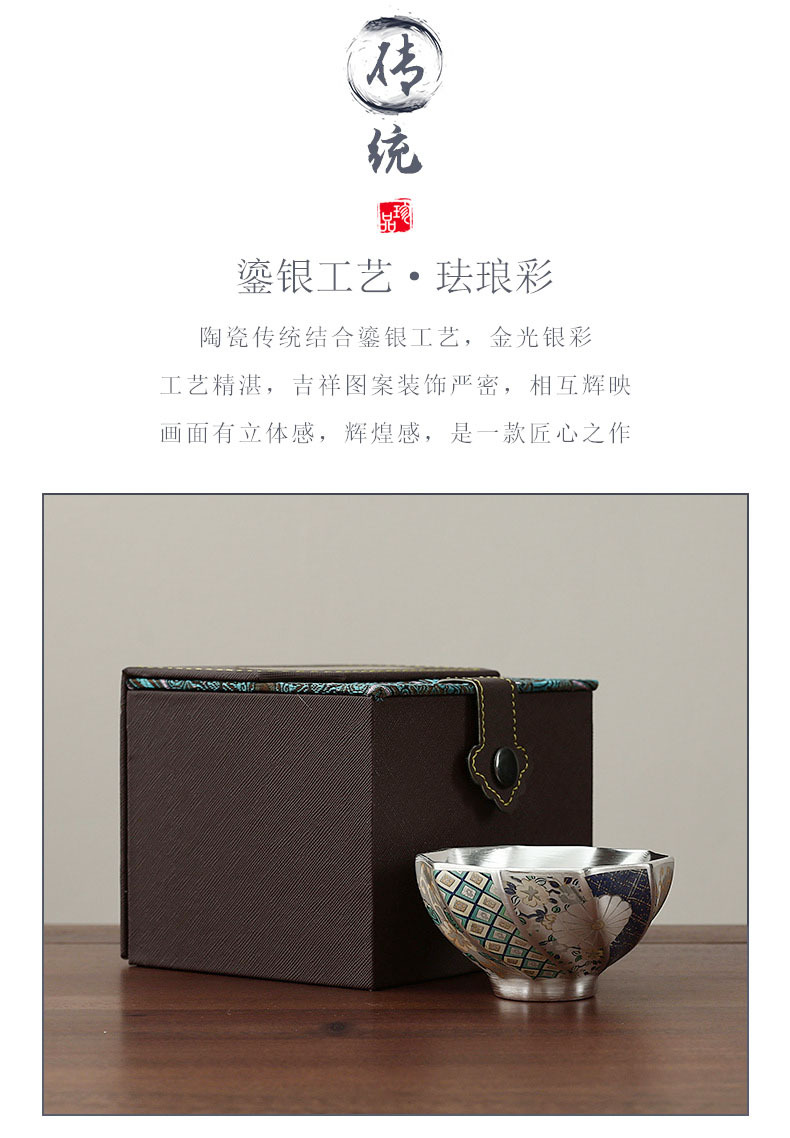 故宫文创高档主人杯单杯鎏银陶瓷茶杯家用送外国友人中国特色礼物